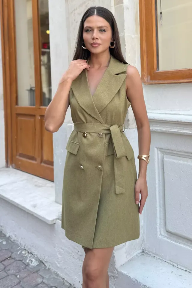 فستان بدون أكمام بنقشة زهور وياقة V وكسرات، خيار أنيق ومنعش لإطلالة العيد للنساء.