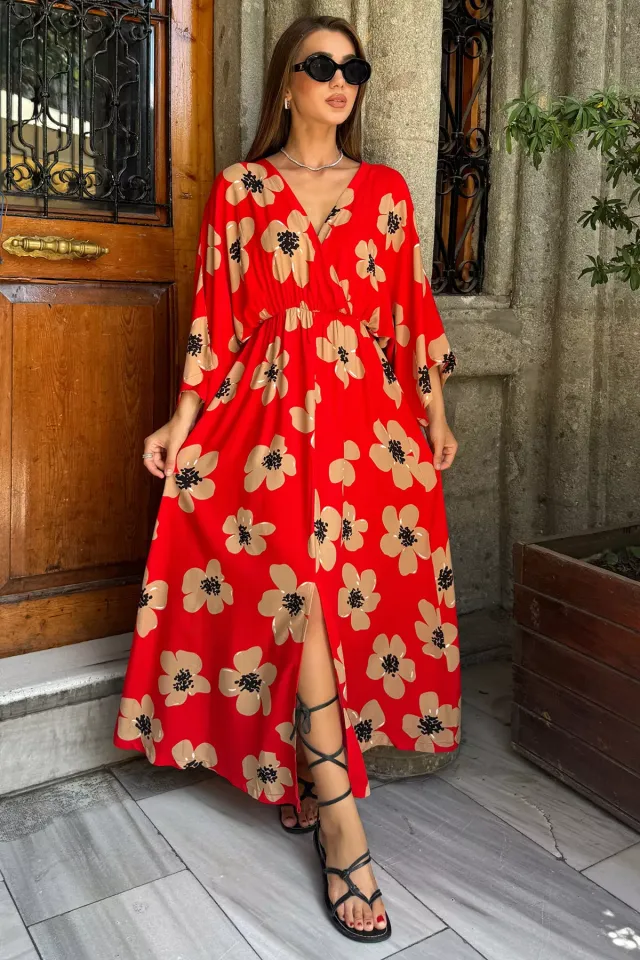 فستان بدون أكمام بنقشة زهور بياقة V وكسرات للنساء - Beyond Store