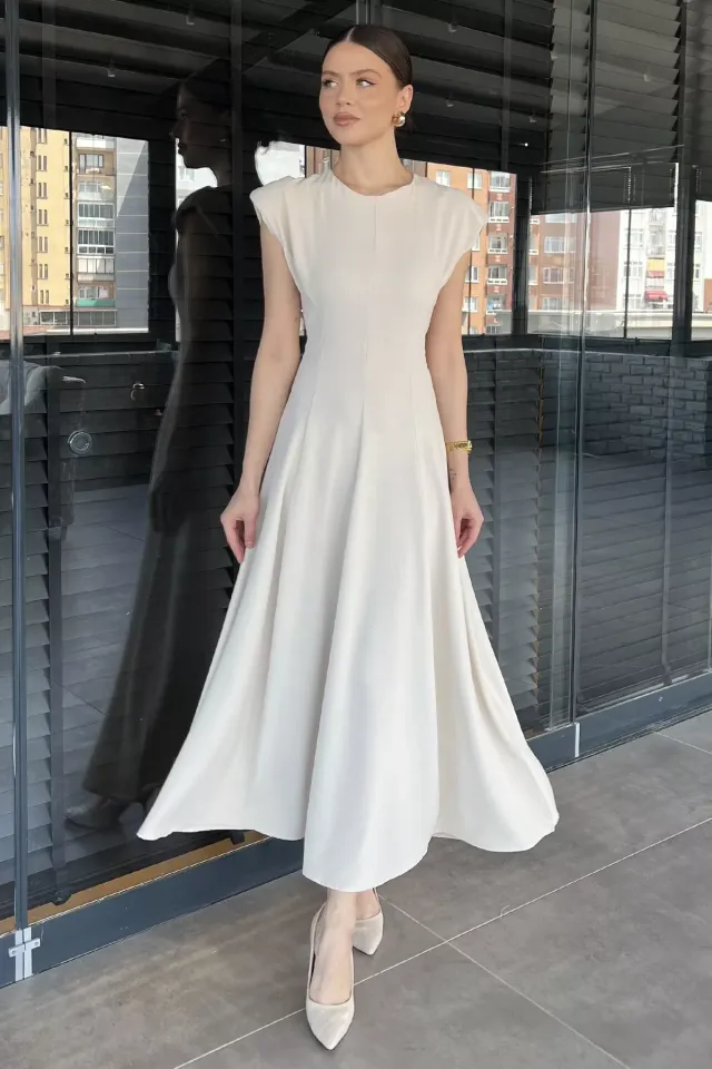 فستان بدون أكمام بنقشة زهور وياقة V وكسرات، خيار أنيق ومنعش لإطلالة العيد للنساء.