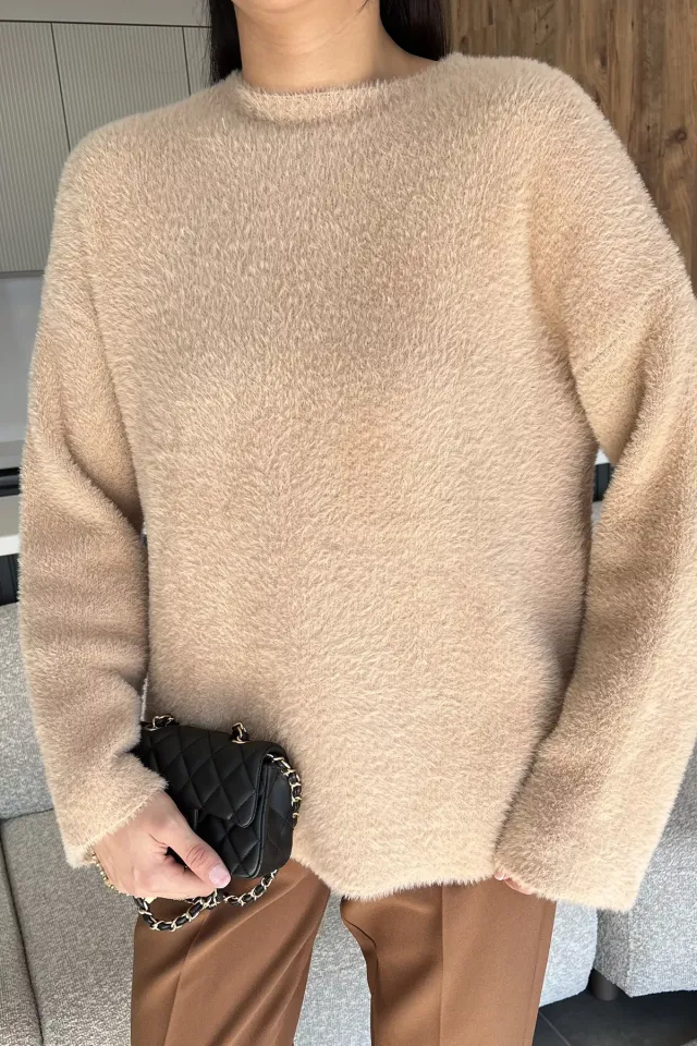كنزة تريكو قصيرة محاكة بملمس ناعم وياقة دائرية للنساء - Beyond Store