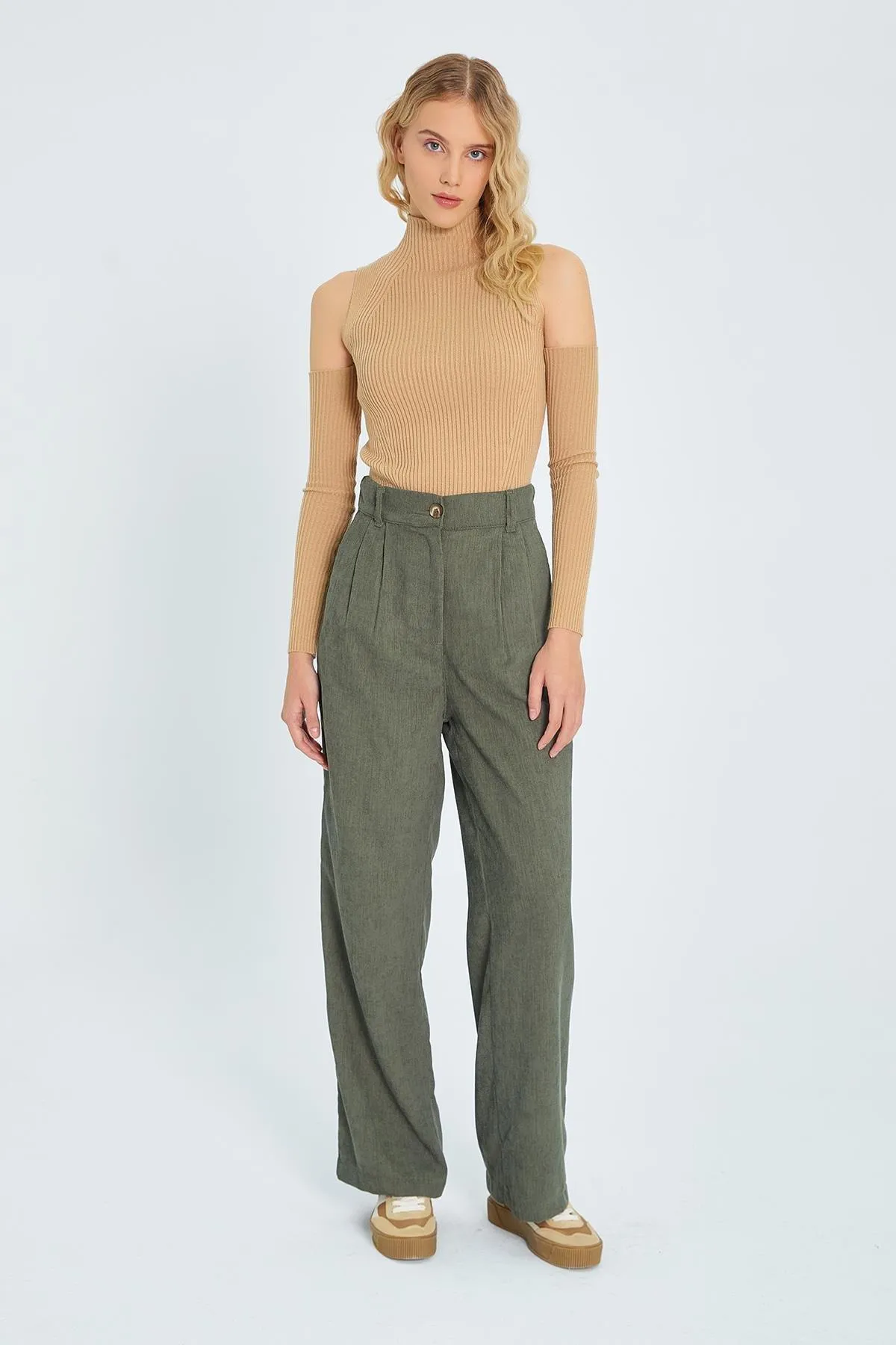 بنطلون نسائي واسع الساق برباط جانبي، مصنوع من 36% قطن، 15% كتان، 7% فيسكوز، و1% إيلاستين. يجمع بين أقمشة طبيعية مسامية وتفاصيل أنيقة برباط لإطلالة مريحة وعصرية. قابل للغسل في الغسالة على درجة حرارة 30 درجة مئوية.