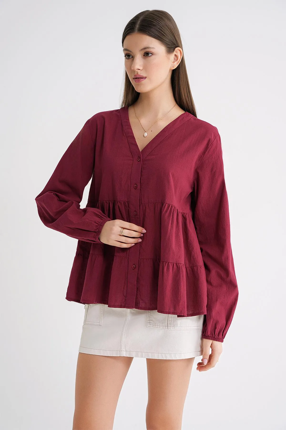 قميص مطرز بأصداف بحرية مع أكمام طويلة وجيب أمامي، قطعة ناعمة تضيف لمسة مميزة لإطلالات الصيف والعيد.