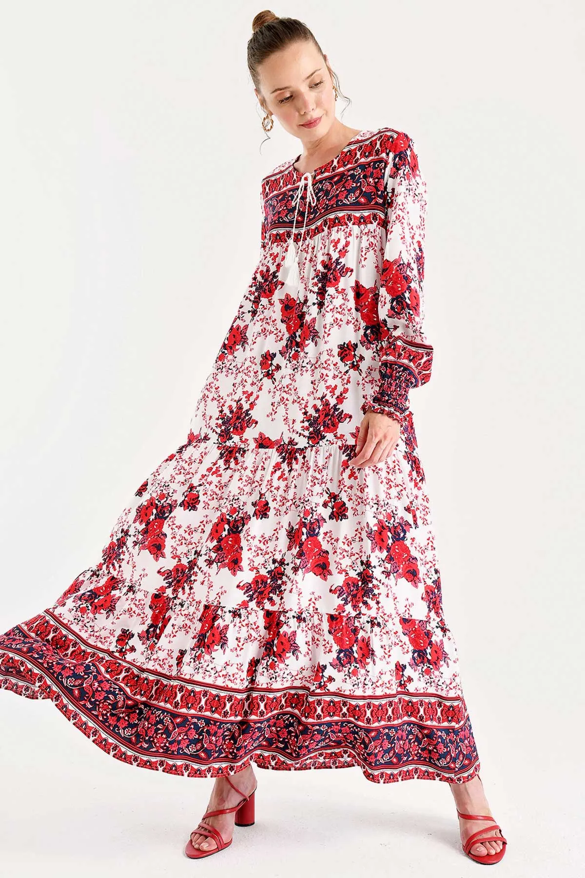 فستان فيسكوز منقوش للمقاسات الكبيرة برقبة صينية وحزام خصر، تصميم محتشم يوفر راحة وأناقة مناسبة للطلعات الكاجوال، أيام العمل، أو اللقاءات الاجتماعية المريحة.