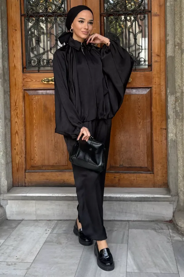 - نوع الأكمام : أكمام واسعة مزمومة من الاسفل