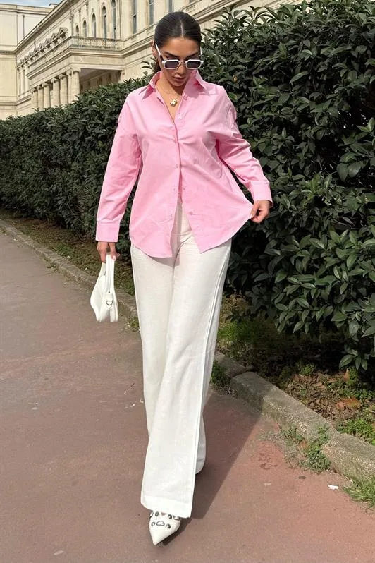 قميص مخطط أوفر سايز بكتف منخفض وجيب أمامي وأزرار، قطعة أساسية مثالية لتنسيقات صيفية مريحة للنساء.