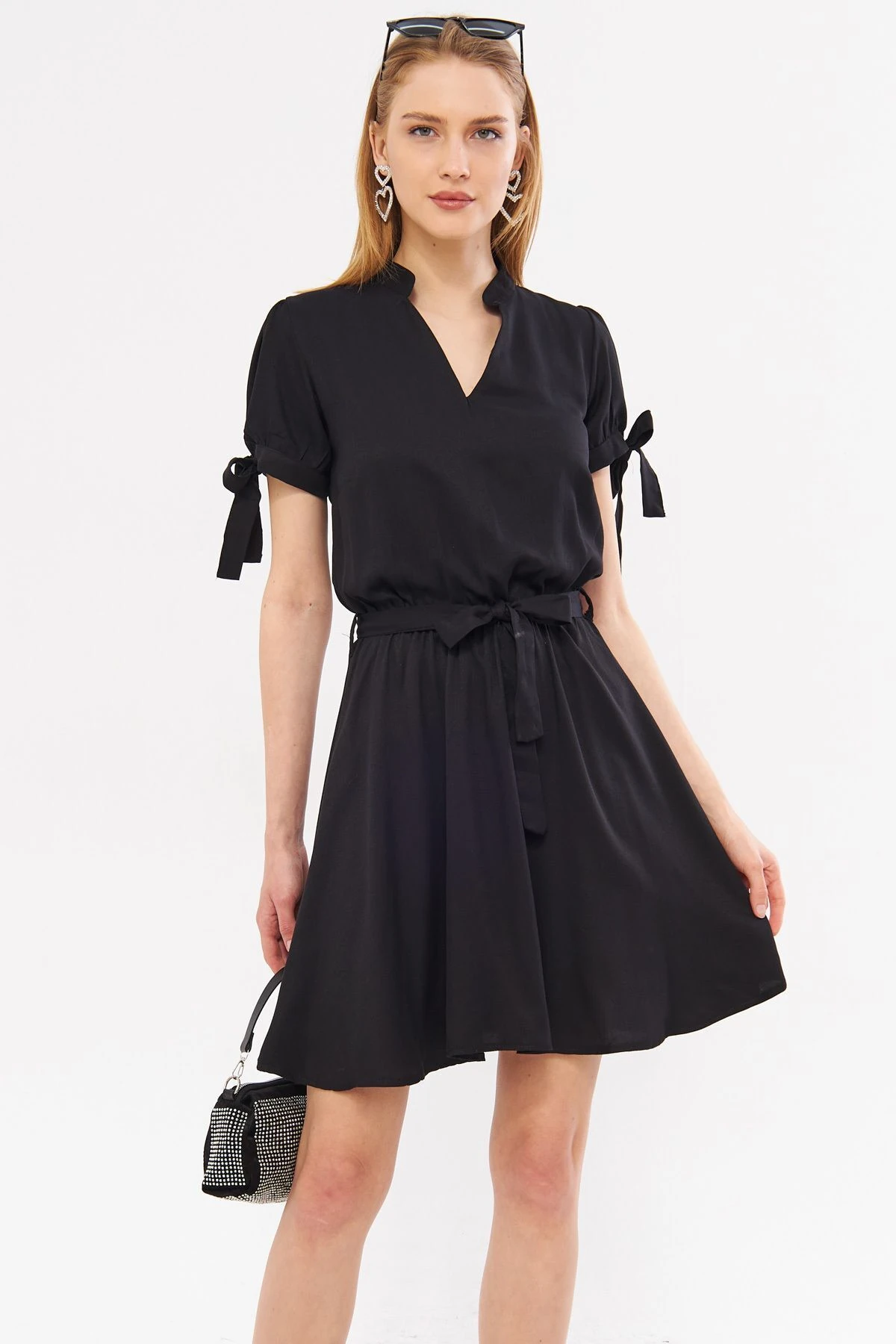 فستان ميني ضيق بياقة رسن وظهر مكشوف، قطعة لافتة لسهرات العيد الجريئة