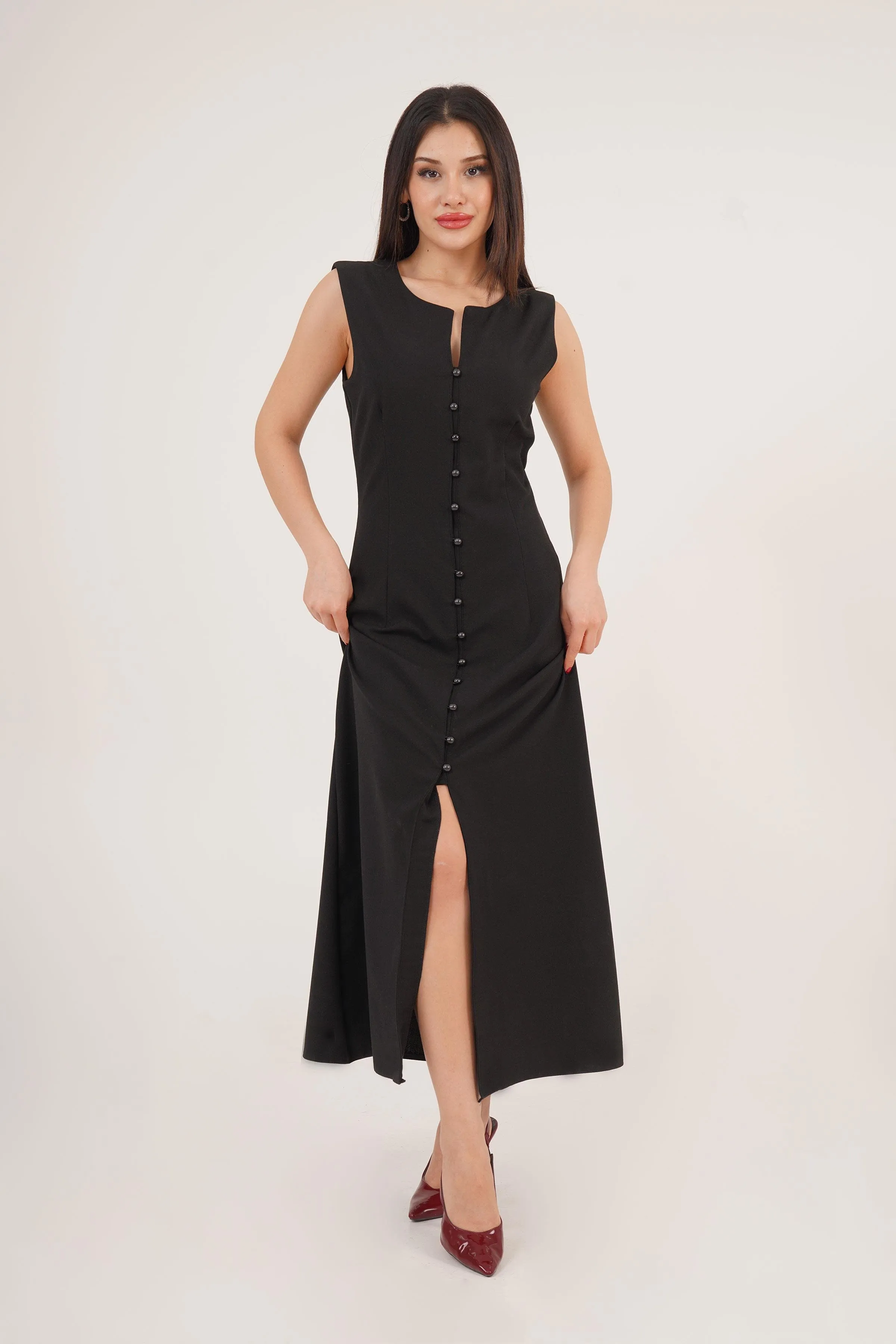 فستان نسائي قصير من الكريب اللامع بقصة واسعة وياقة V مع أكمام قصيرة، خيار خفيف وأنيق لأيام العيد.