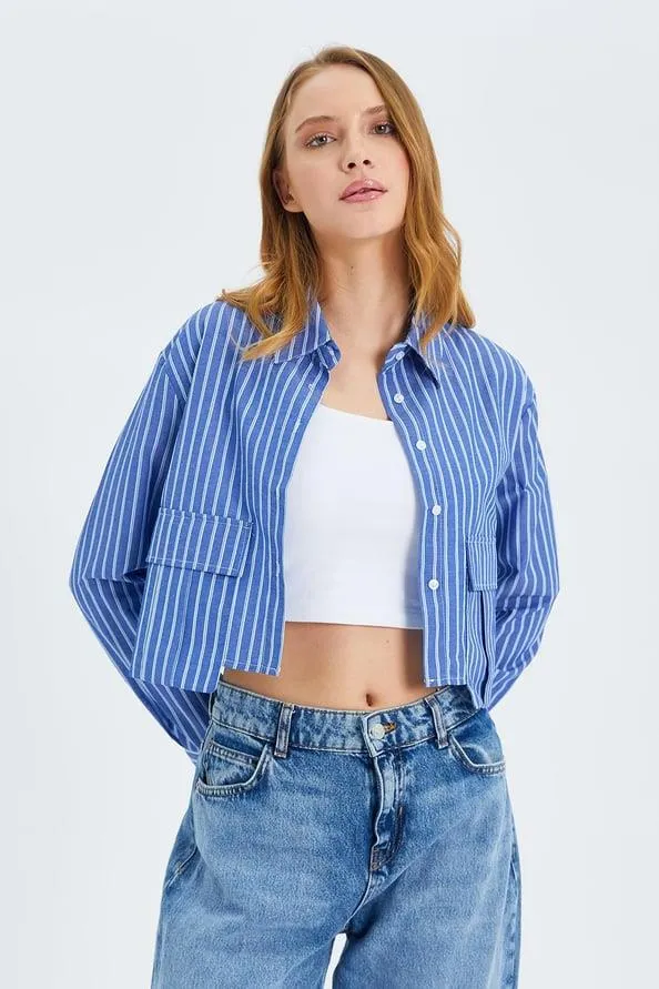 قميص كاروهات واسع مزين بحجر الراين مع كتف منخفض وأزرار أمامية، قطعة كاجوال تضيف لمسة تألق ناعمة.