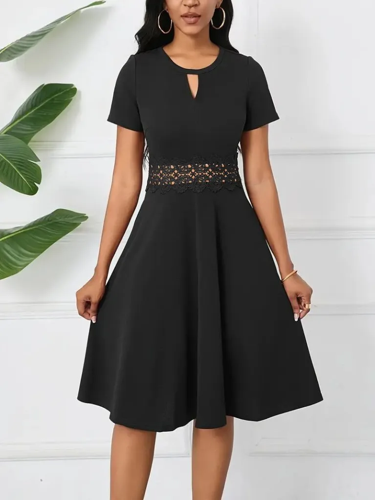 فستان ميدي بقصة A وياقة U مع حمالات رفيعة، قطعة صيفية منسدلة بتفاصيل ناعمة وأناقة بسيطة.