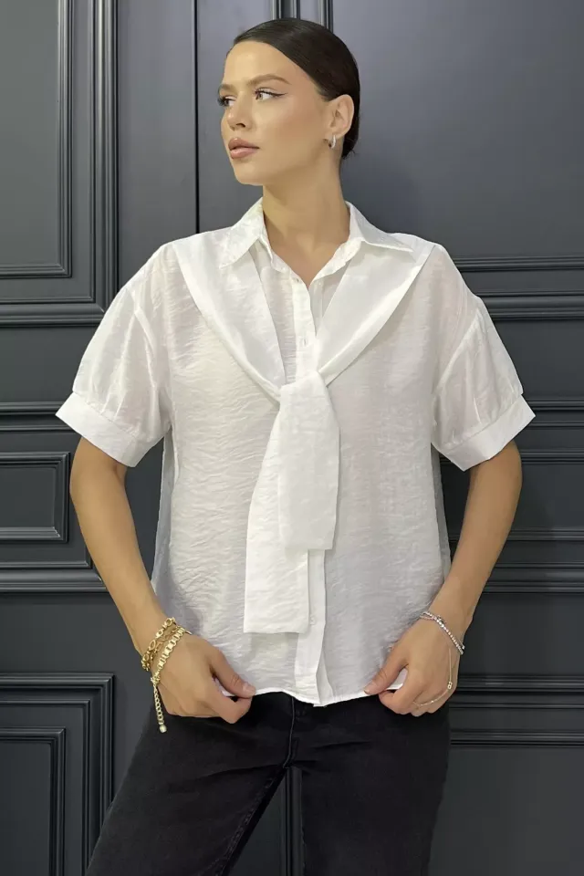 قميص قصير مخطط مزود بأزرار أمامية وجيب أمامي، قطعة أساسية أنيقة لإطلالات صيفية عصرية وراقية.