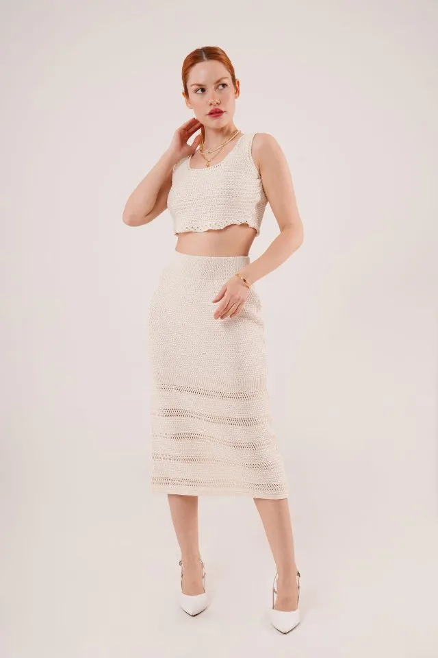 طقم نسائي قطعتين مع توب بياقة قائمة بدون أكمام وتنورة ميني برباط خصر، مثالي للعيد والاستخدام اليومي.