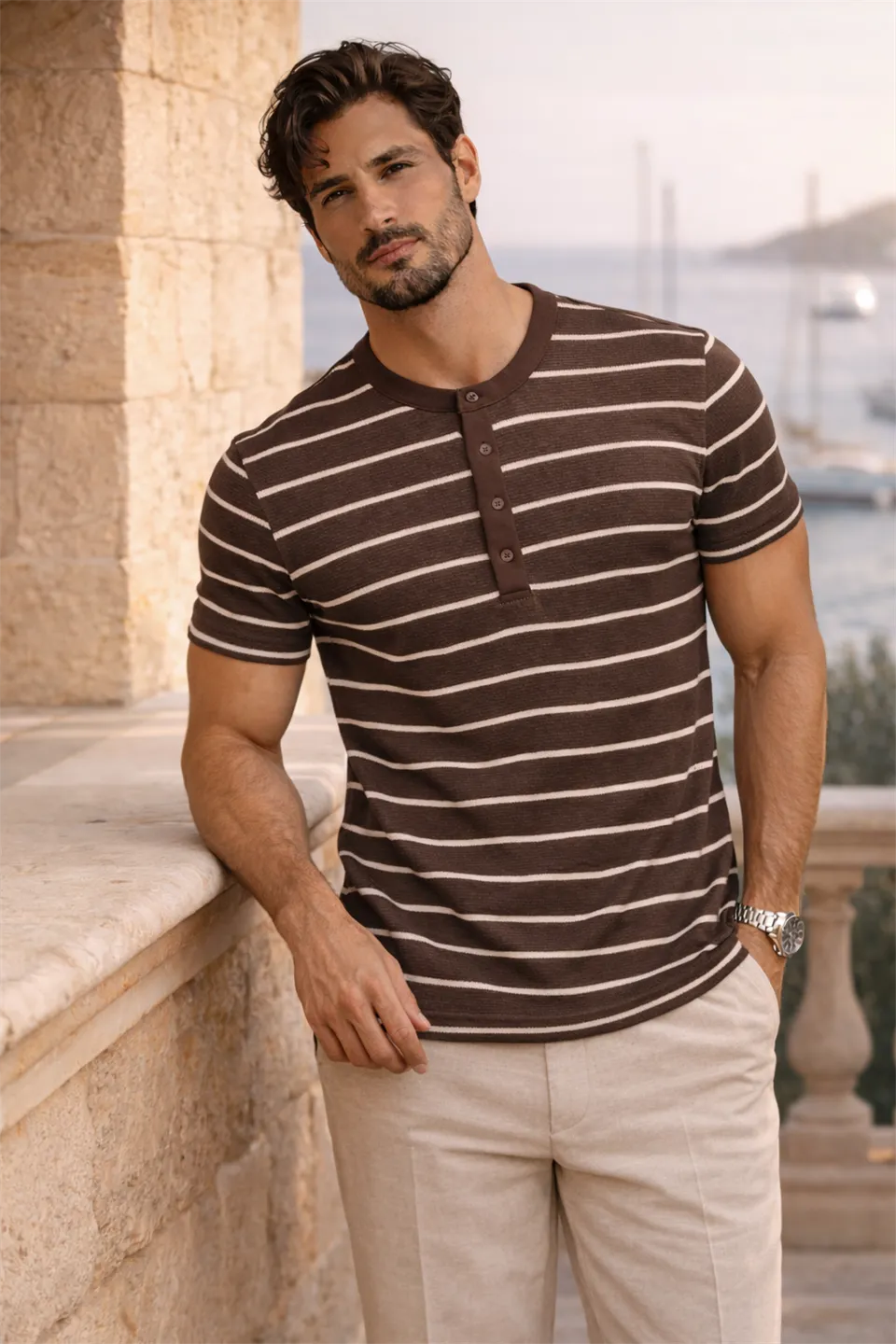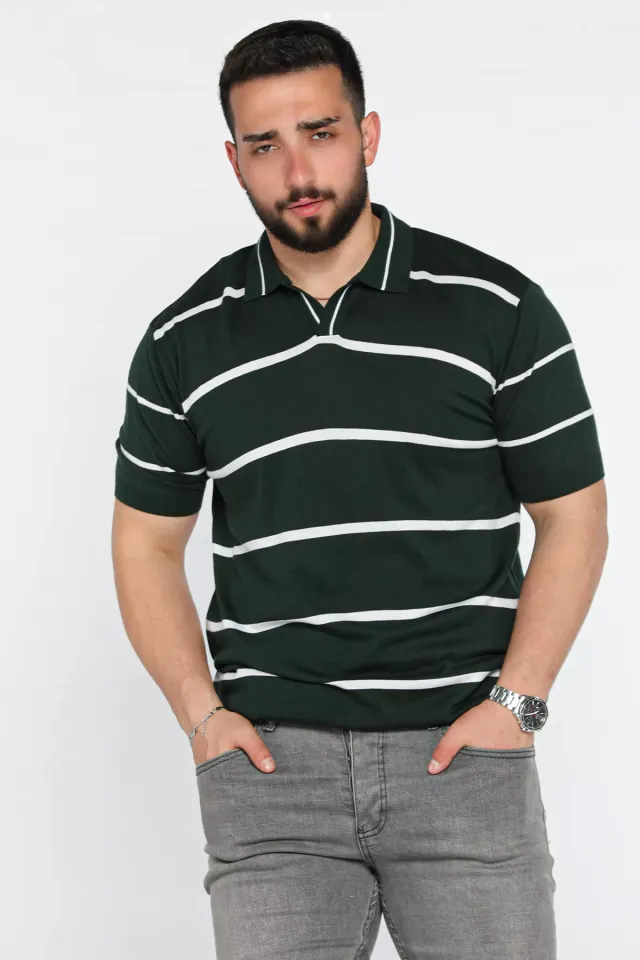 تيشيرت رجالي أساسي بياقة بولو مضلعة وأكمام قصيرة، مصنوع من 98% قطن و2% لايكرا. ناعم، يسمح بمرور الهواء، ومتين. يُغسل في الغسالة على درجة حرارة 30 درجة مئوية.