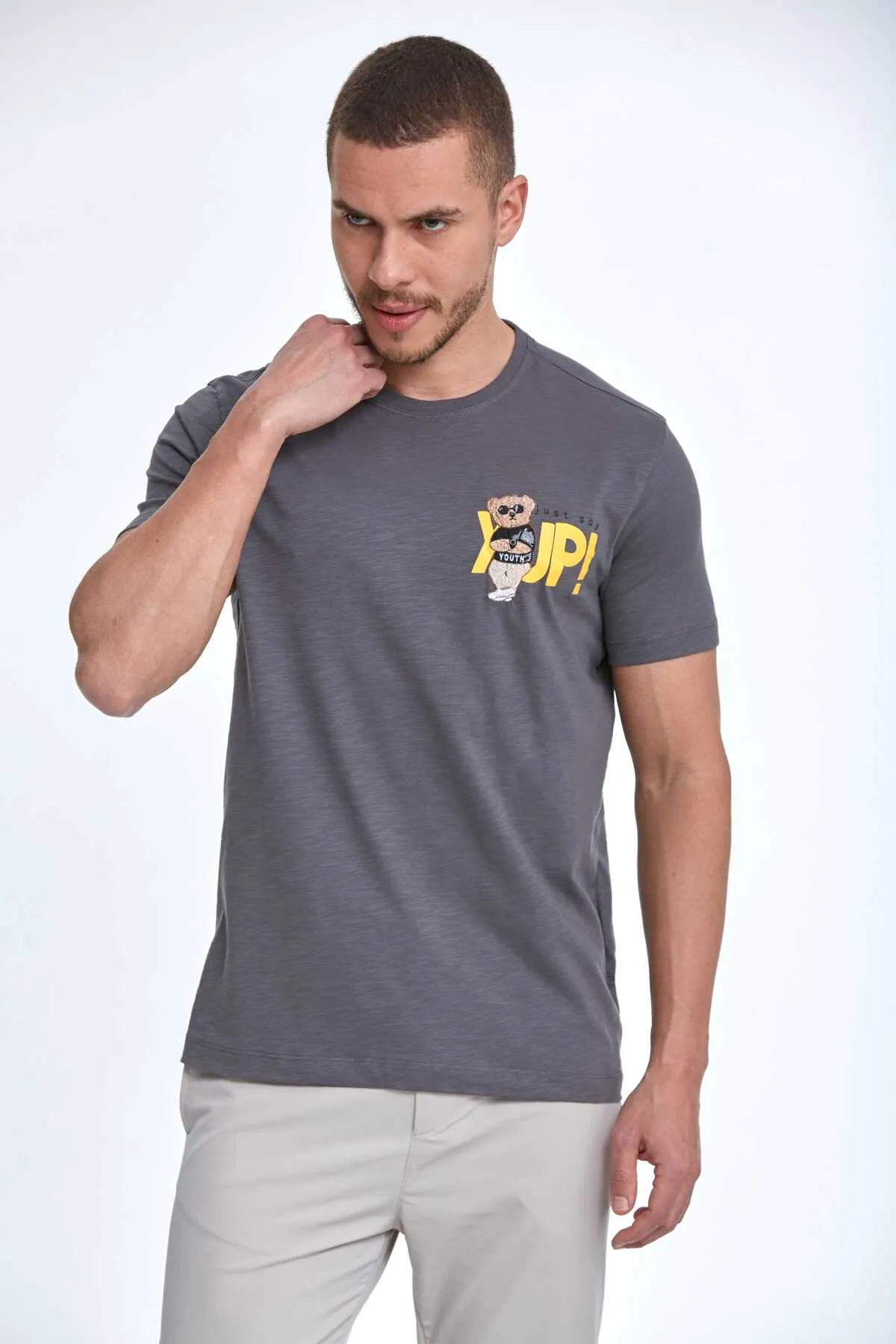 تي شيرت رجالي سادة بياقة دائرية وأكمام قصيرة - Beyond Store