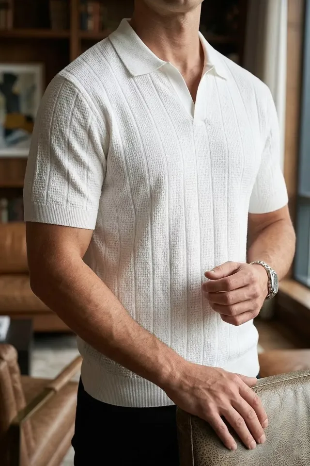 تيشيرت رجالي سادة بأكمام قصيرة وياقة دائرية وأكتاف منسدلة، مصنوع من مزيج ناعم من القطن بنسبة 98% والليكرا بنسبة 2%. يُغسل في الغسالة بماء بارد على درجة حرارة 30 درجة مئوية.