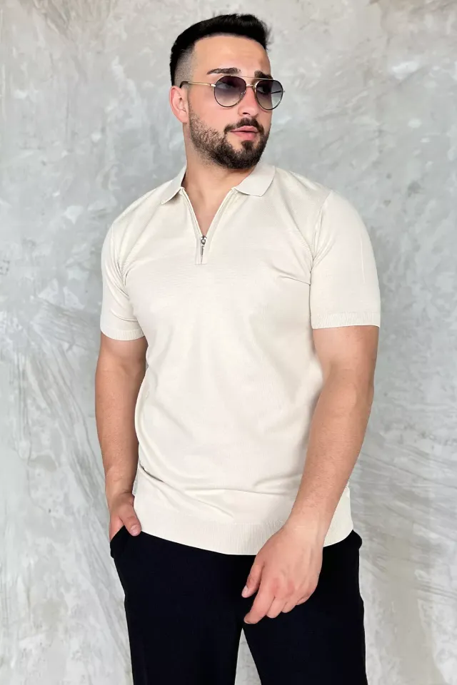 تي شيرت رجالي بأكمام قصيرة بياقة بولو وأزرار وجيب - Beyond Store