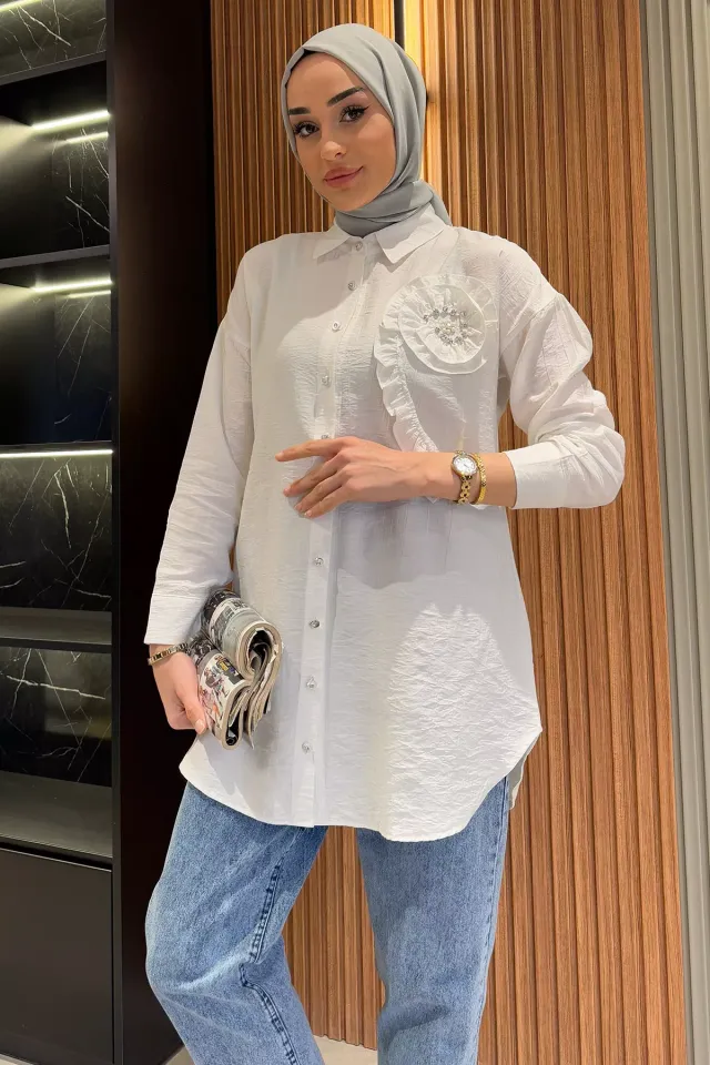 تونيك نسائي محتشم بياقة دائرية وقصة مريحة مع شق جانبي أنيق، إطلالة عملية ومثالية للعيد والصيف.
