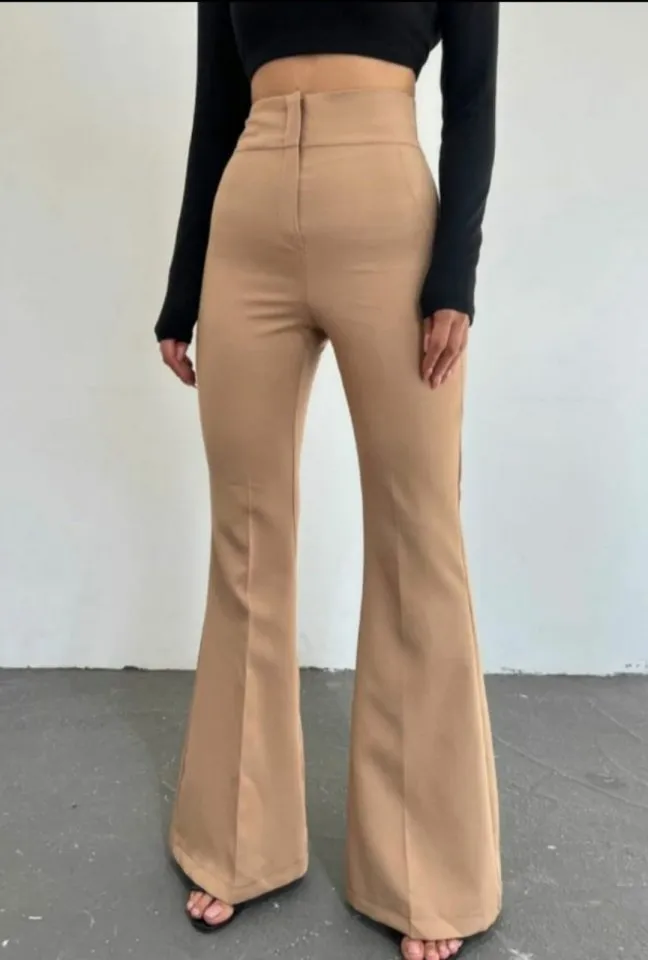بنطلون واسع بخصر عالٍ وتطريز على شكل فيونكة مع خصر قابل للتعديل، مثالي لإطلالة عيد ناعمة للنساء