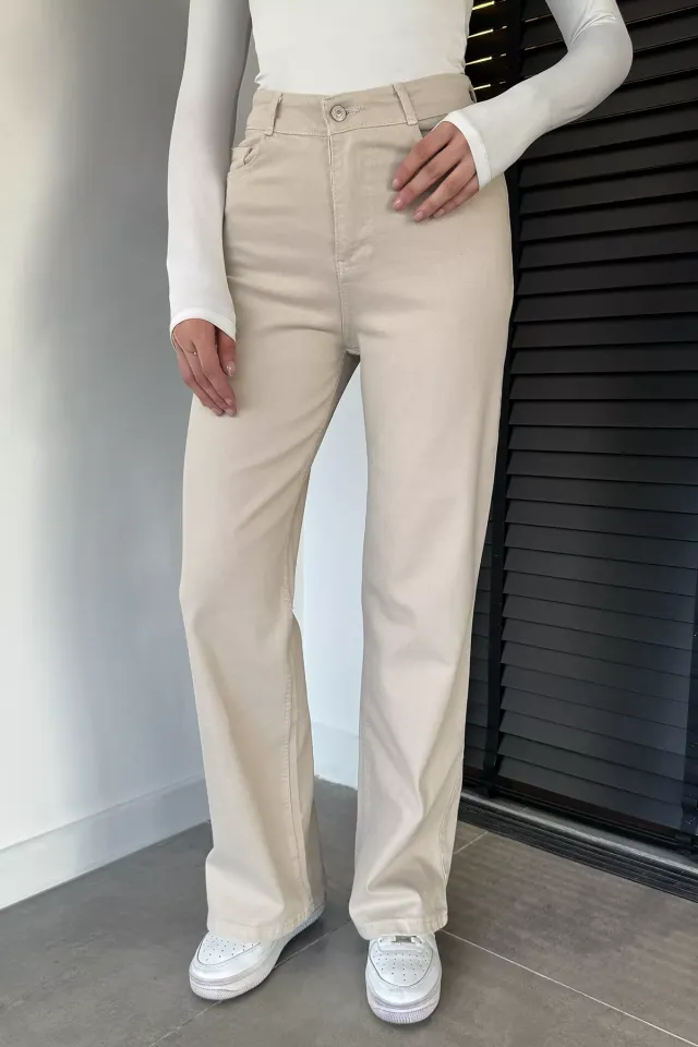 بنطلون واسع بخصر عالٍ وتطريز فيونكة مع خصر قابل للتعديل للنساء - Beyond Store