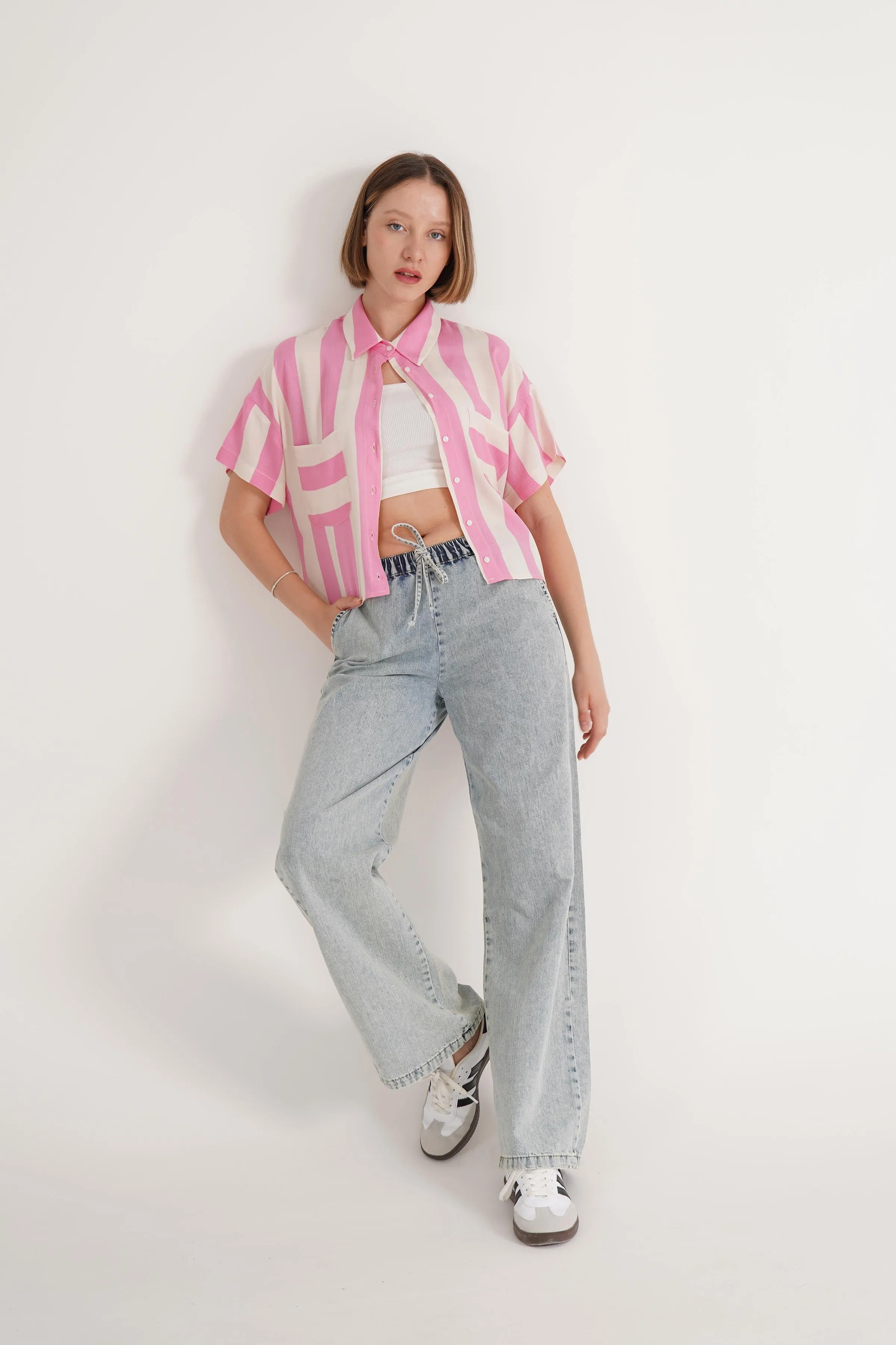 قميص نسائي بأكمام قصيرة و أزرار أمامية - Beyond Store
