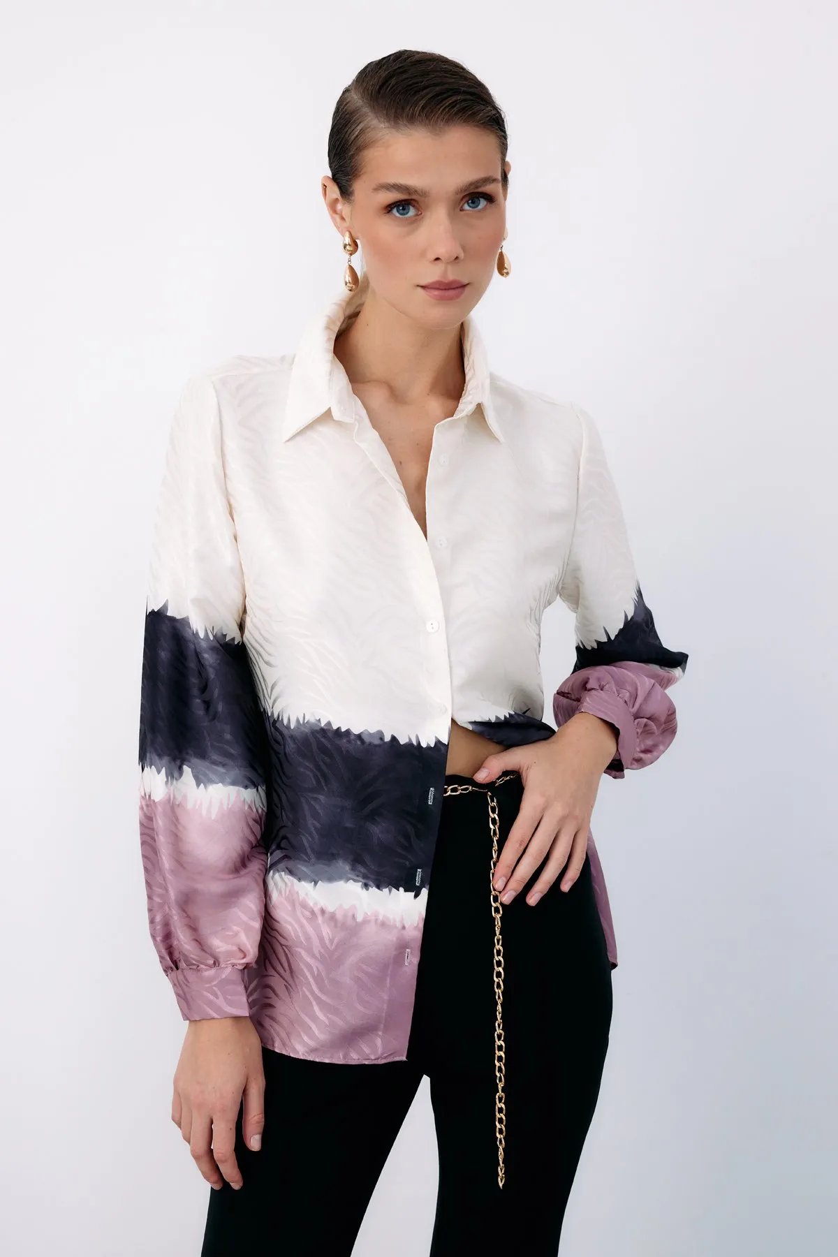 قميص نسائي أنيق بأكمام قصيرة لمظهر جذاب، مثالي للمظهر العصري والأنيق.