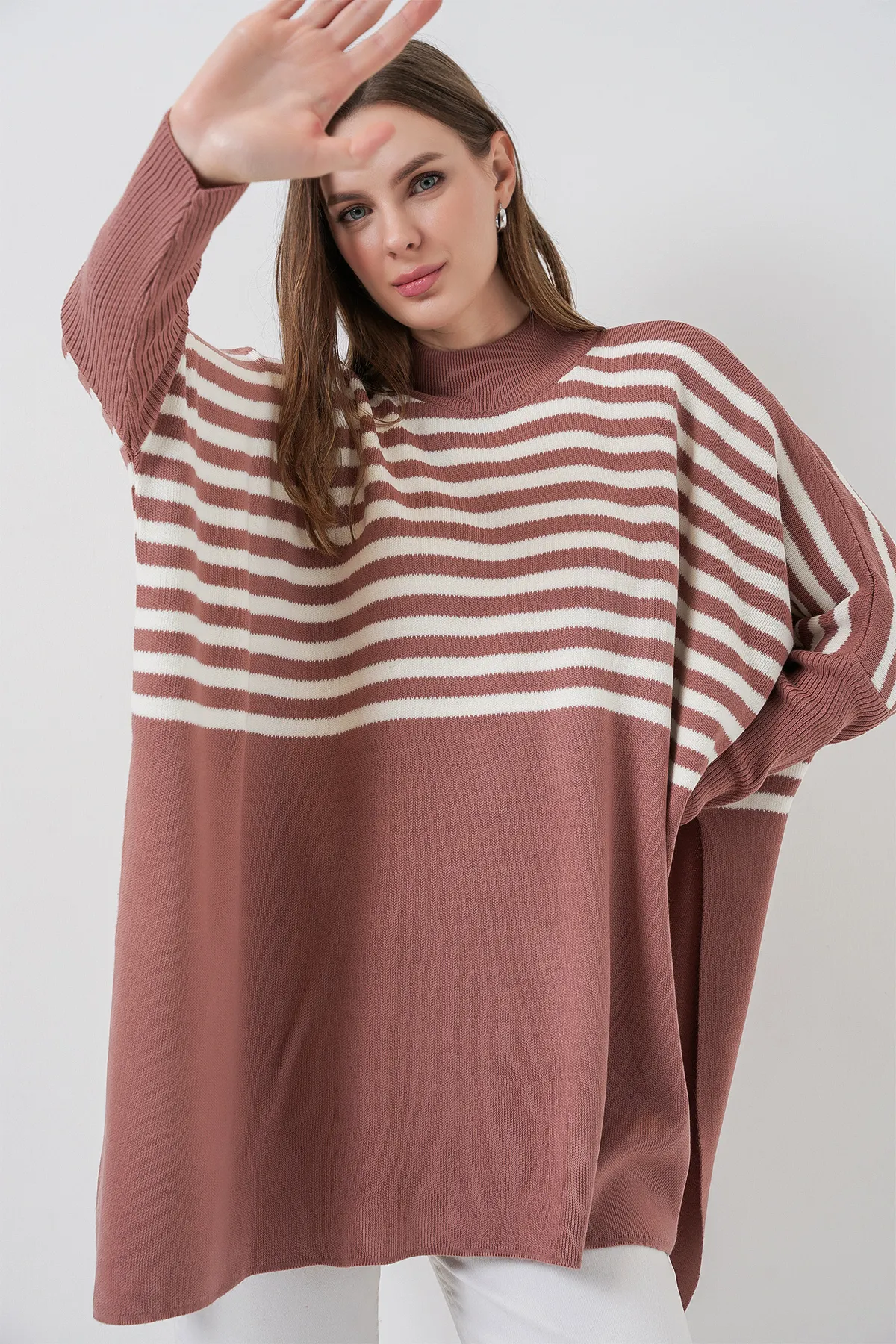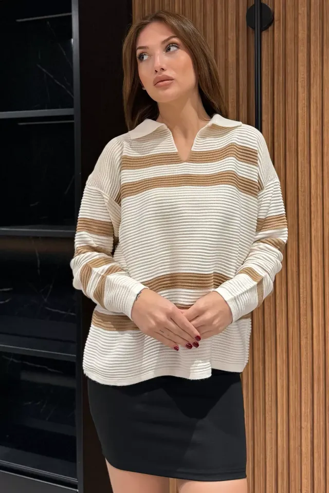 كنزة تريكو أساسية بأكمام قصيرة وياقة دائرية، بلمسة خفيفة تناسب إطلالات عيد صيفية بسيطة وأنيقة.