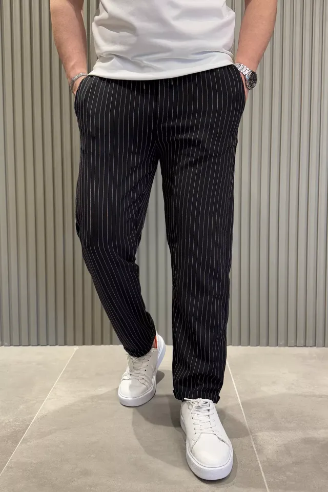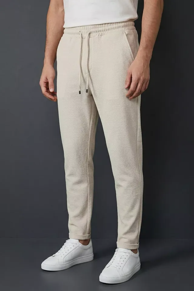 بنطال رياضي رجالي بقصّة مستقيمة، بخصر مرن، مصنوع من القطن بنسبة 100% لنعومة وراحة فائقة. قابل للغسل على درجة حرارة 40 درجة مئوية، مثالي للارتداء اليومي.