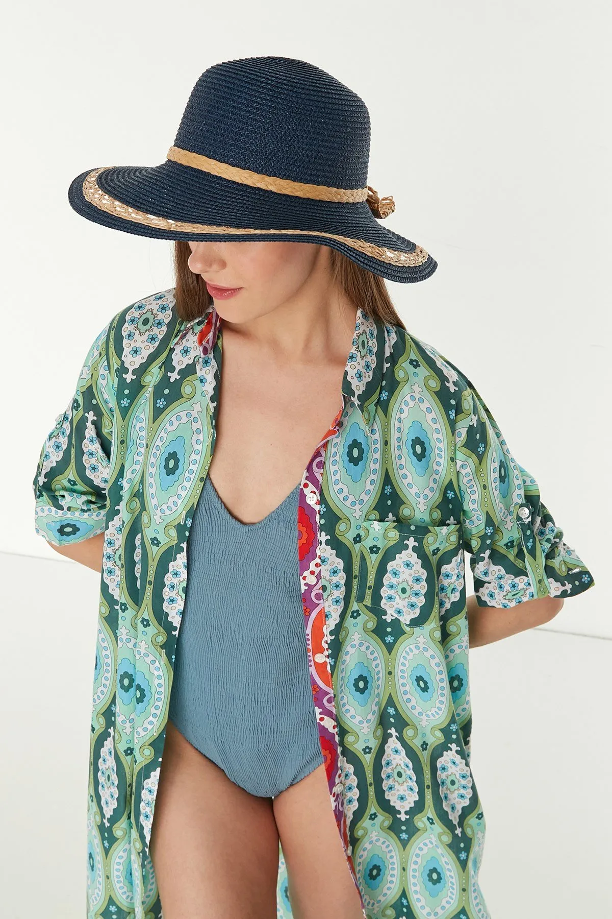 إكسسوار أنيق بقبعة عريضة تحميك من الشمس.