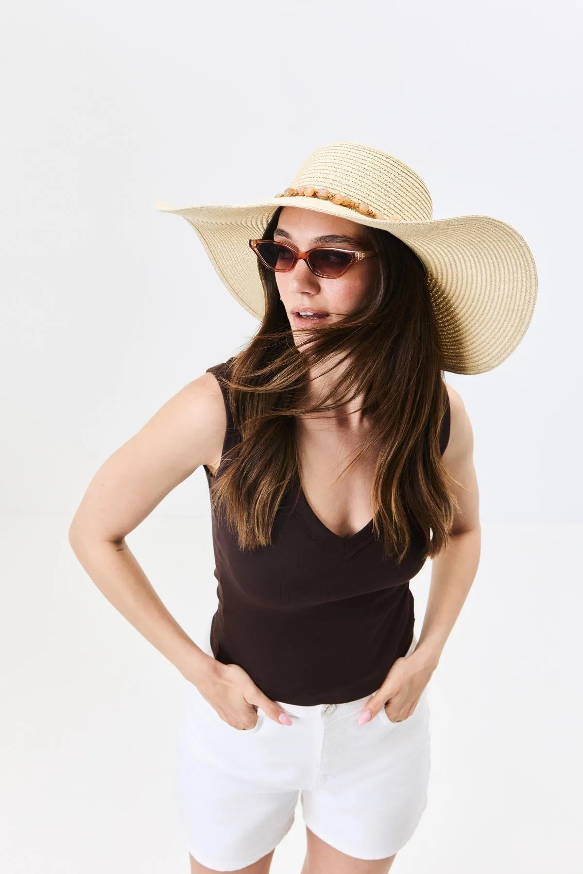 إكسسوار أنيق بقبعة عريضة تحميك من الشمس.