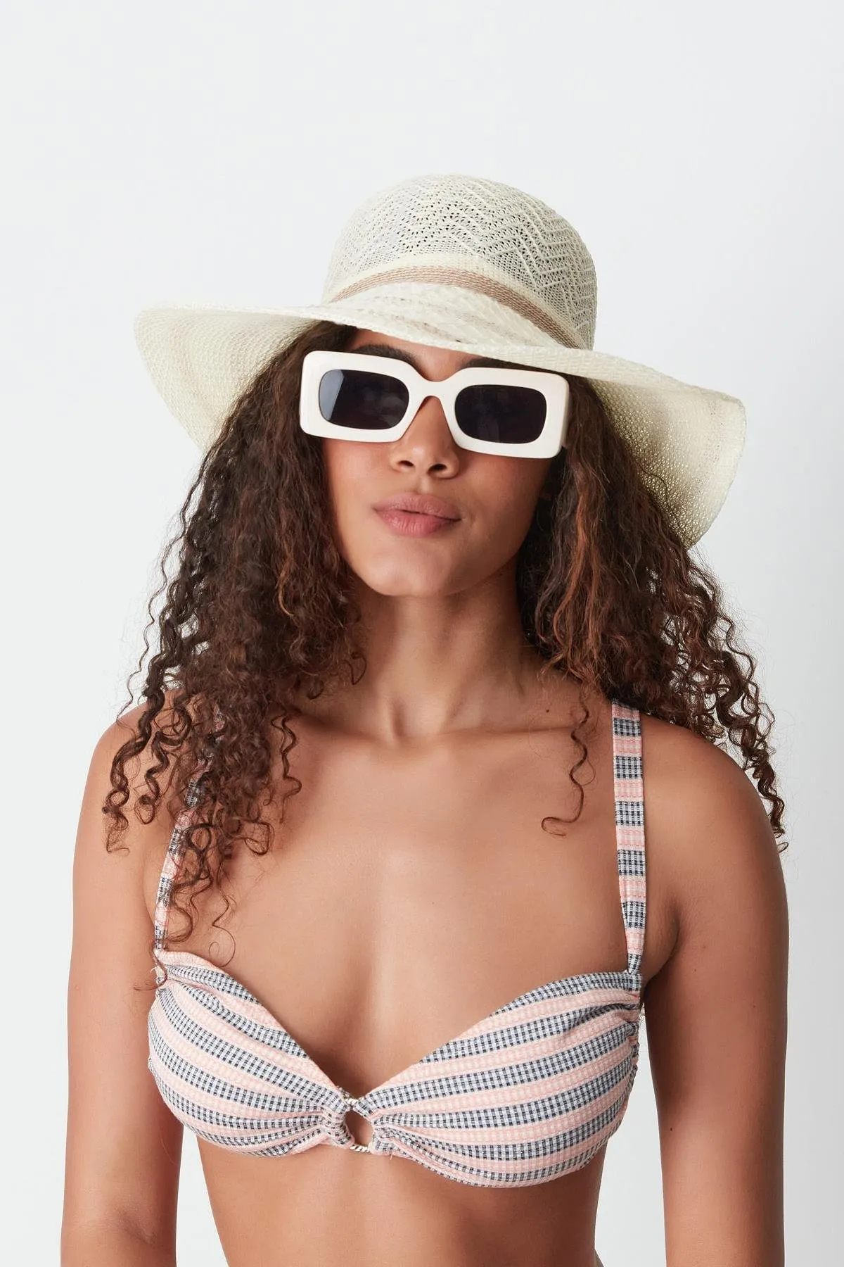 قبعة شاطئ نسائية من القش بتفاصيل خطوط - Beyond Store