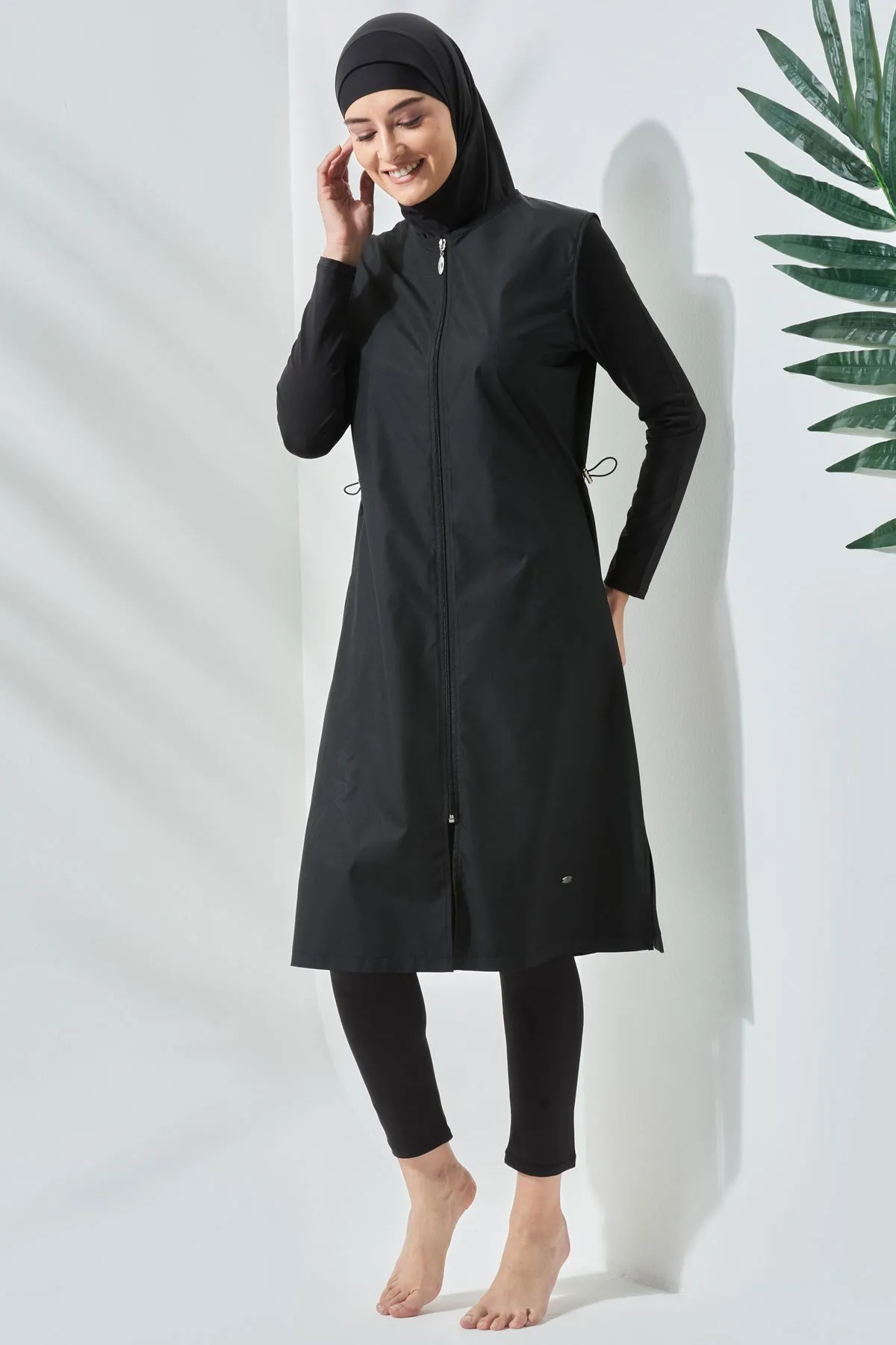 بدلة سباحة نسائية محتشمة منقوشة بسحاب أمامي | أكمام طويلة - Beyond Store