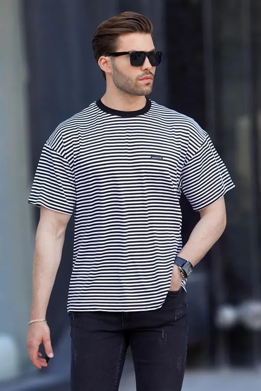 تيشيرت رجالي مضلع بأكمام قصيرة وياقة دائرية، مصنوع من قطن ١٠٠٪، يوفر الراحة والمتانة. مثالي للارتداء الكاجوال. يُغسل على درجة حرارة ٣٠ درجة مئوية.