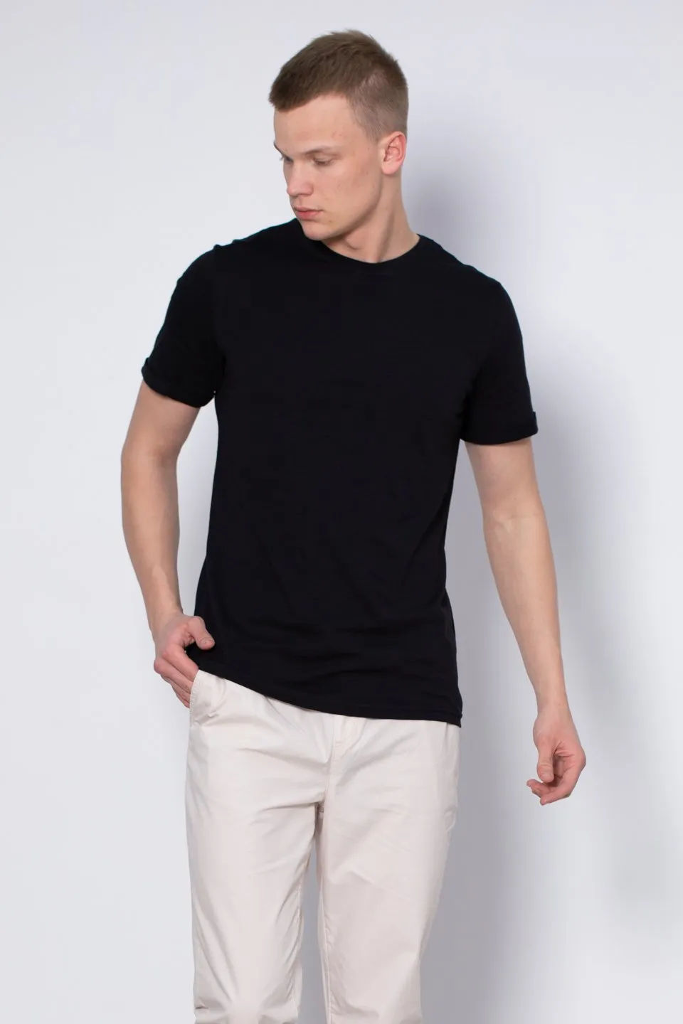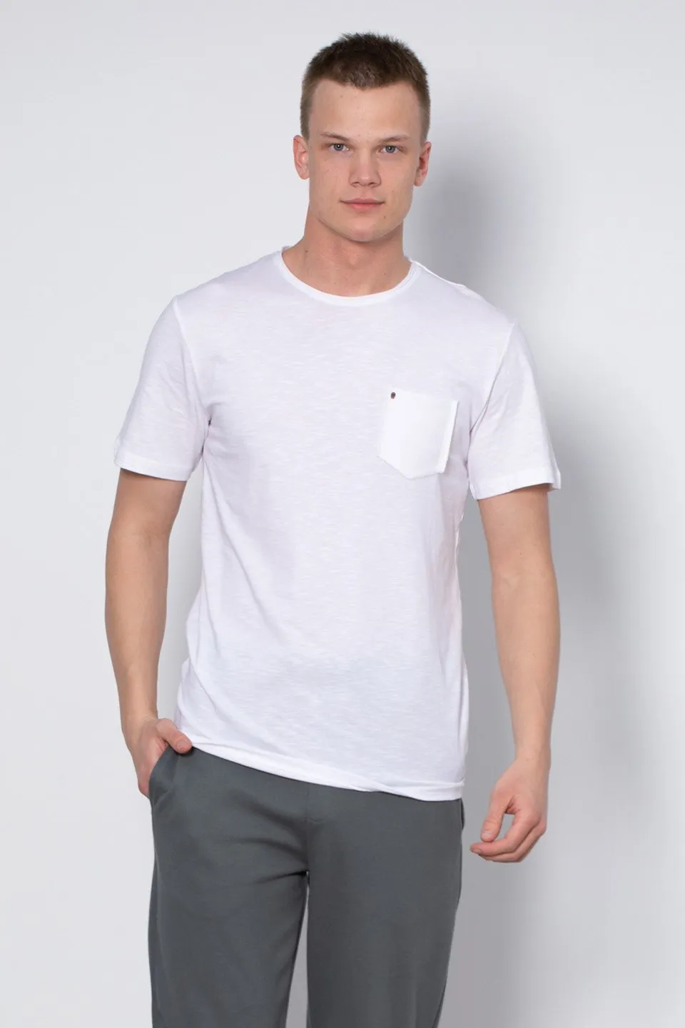 طقم رجالي يتضمن تيشيرتًا قطنيًا 100% بياقة دائرية وأكمامًا قصيرة، مع بنطال بقصة مستقيمة ورباط خصر. مريح وأنيق. يُغسل على درجة حرارة 30 مئوية.