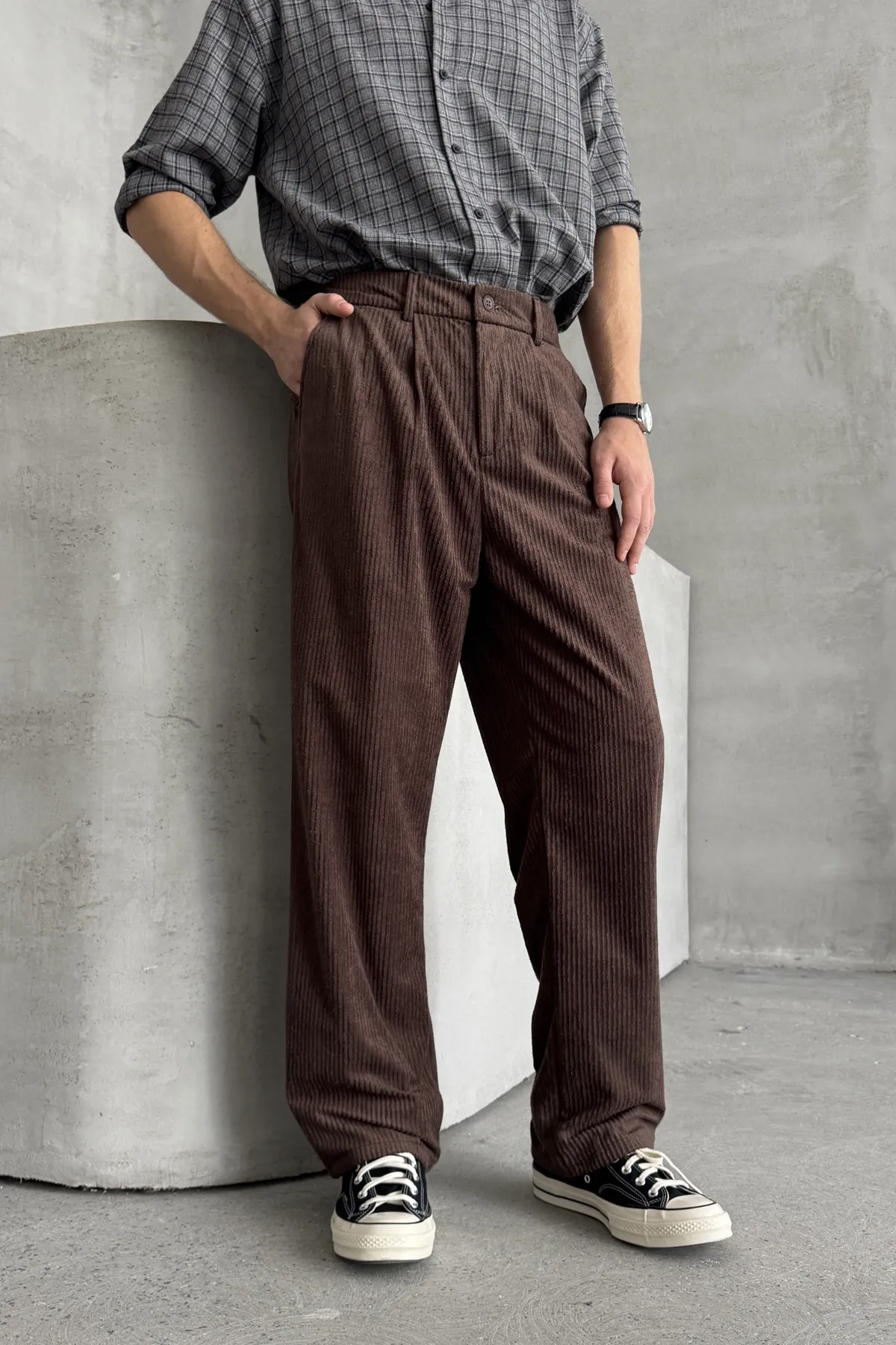 بنطلون رجالي بقصّة مستقيمة، بخصر برباط، مصنوع من قطن ١٠٠٪ لنعومة وراحة فائقة. قابل للغسل على درجة حرارة ٤٠ درجة مئوية، مثالي للارتداء اليومي.