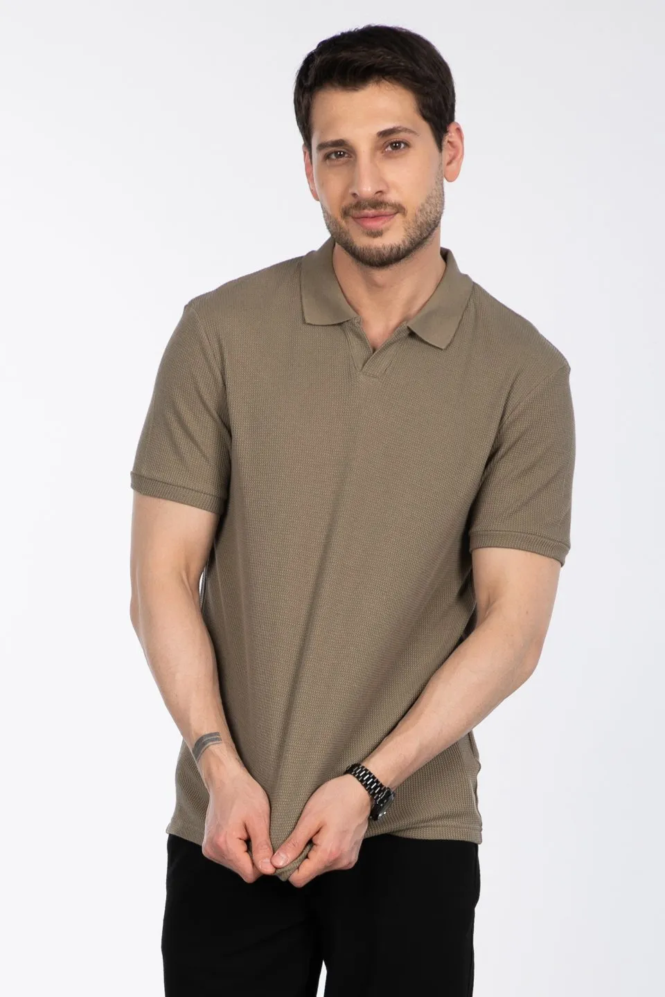 تي شيرت بولو سادة بأكمام قصيرة وأزرار للرجال - Beyond Store