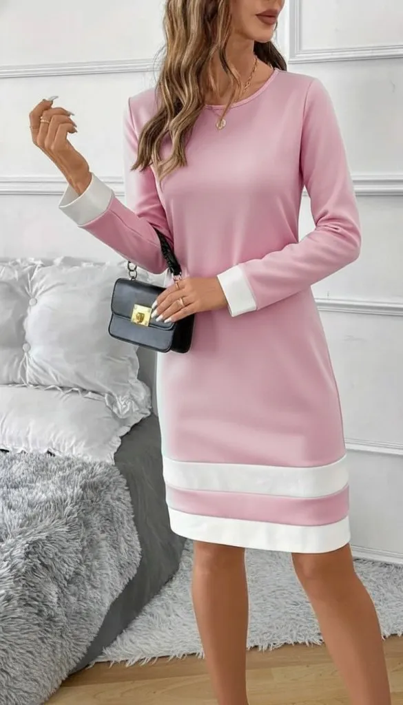 فستان نسائي ماكسي مشجر واسع بأكمام الخفاش وتنورة بطيات وشق جانبي