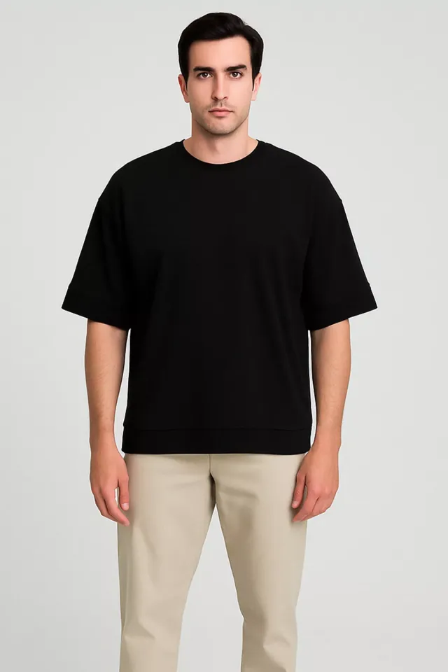 تيشيرت رجالي مطبوع بياقة دائرية وأكتاف منسدلة وأكمام قصيرة. مصنوع من قطن ١٠٠٪ لضمان النعومة والتهوية. يُغسل على درجة حرارة ٣٠ درجة مئوية.