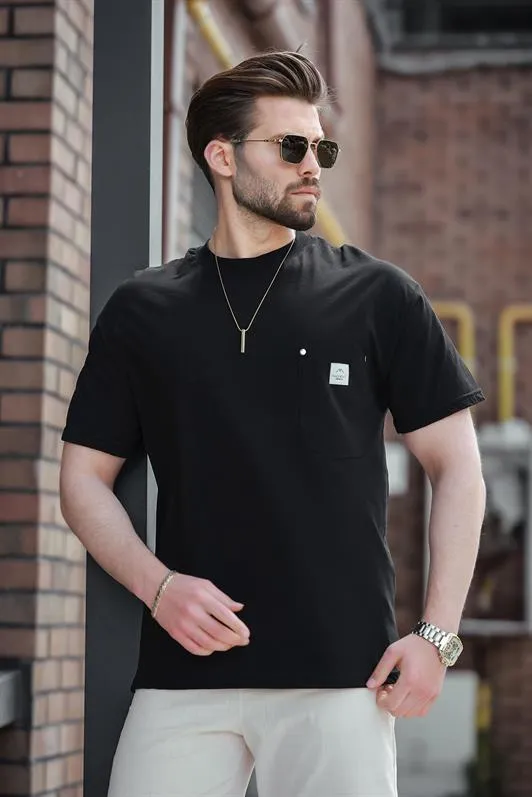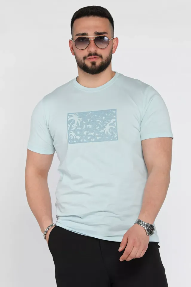 تي شيرت سادة بياقة دائرية وأكمام عادية للرجال