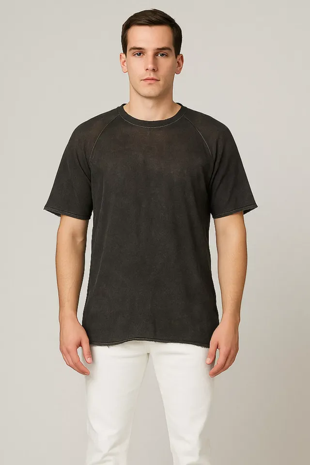تي شيرت سادة بياقة دائرية وأكمام عادية للرجال - Beyond Store