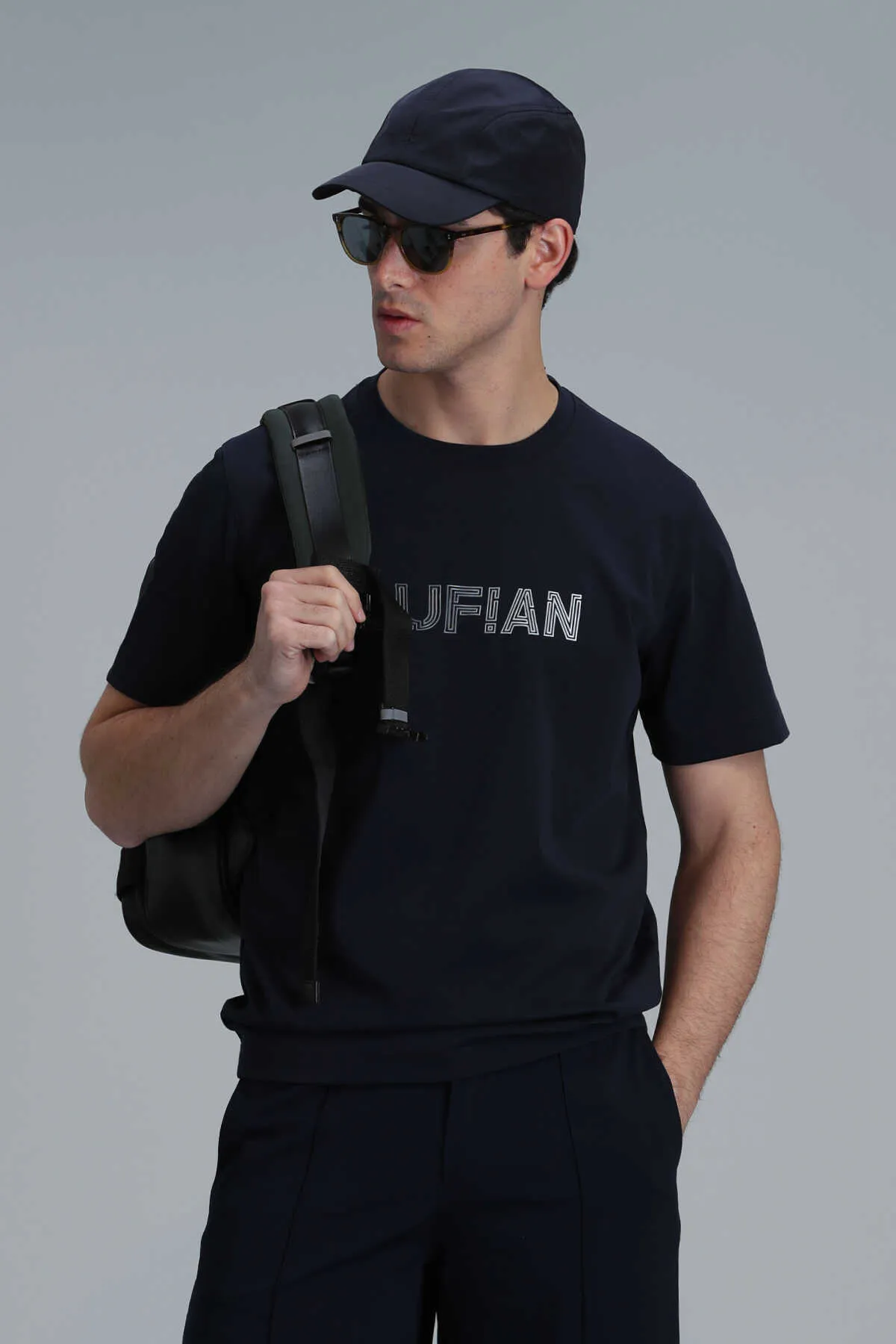 تي شيرت سادة بياقة دائرية وأكمام عادية للرجال - Beyond Store