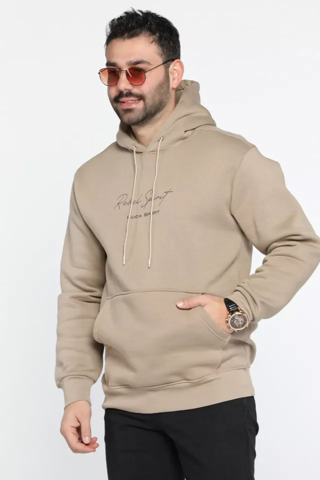 سويت شيرت رجالي مطبوع بياقة دائرية، يتميز بجيوب أمامية مزدوجة، يجمع بين الراحة والأناقة العملية لإطلالة يومية مميزة. مصنوع من مزيج ناعم من 65% قطن و35% بوليستر، قابل للغسل على درجة حرارة 30 درجة مئوية.