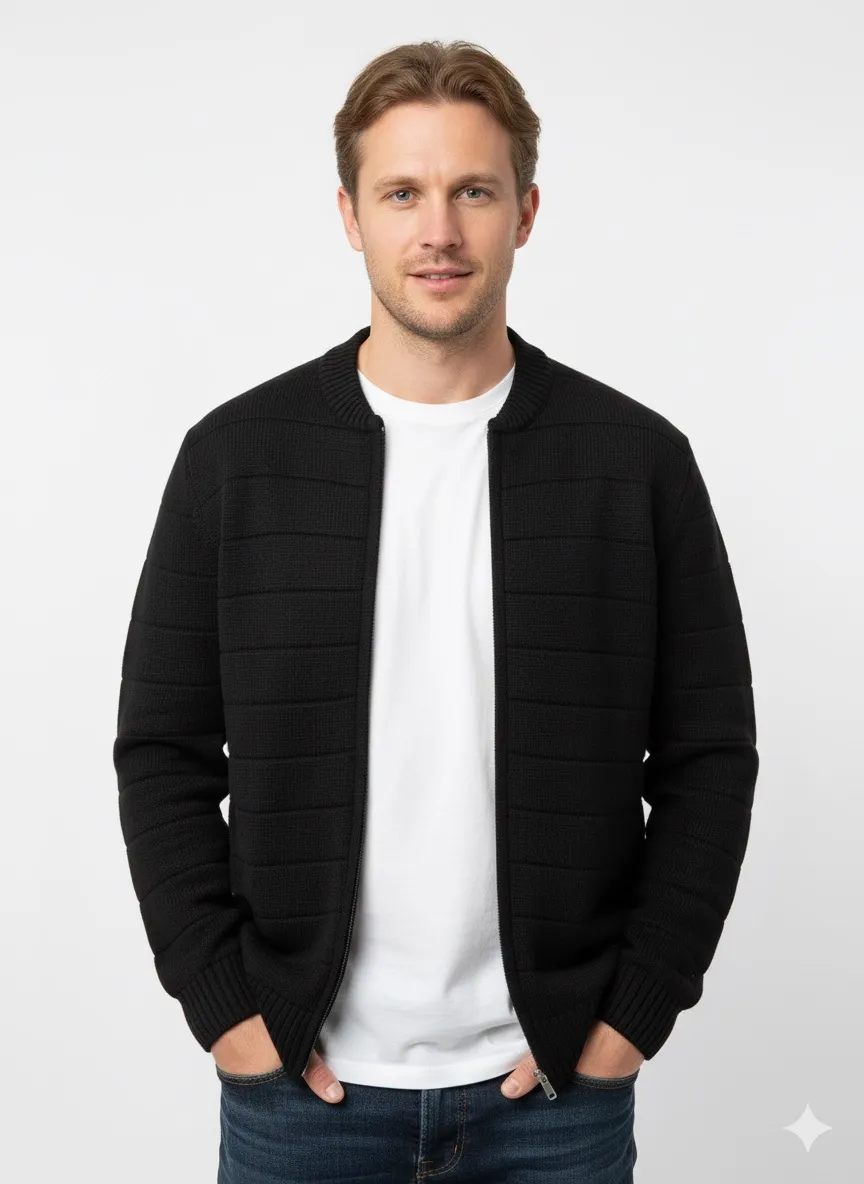 سترة رجالية مضلعة برقبة دائرية، مصنوعة من 80% بولي أميد، 15% فيسكوز، و5% لايكرا. ناعمة، مرنة، ومتينة، ومريحة للارتداء اليومي. قابلة للغسل على درجة حرارة 30 درجة مئوية.