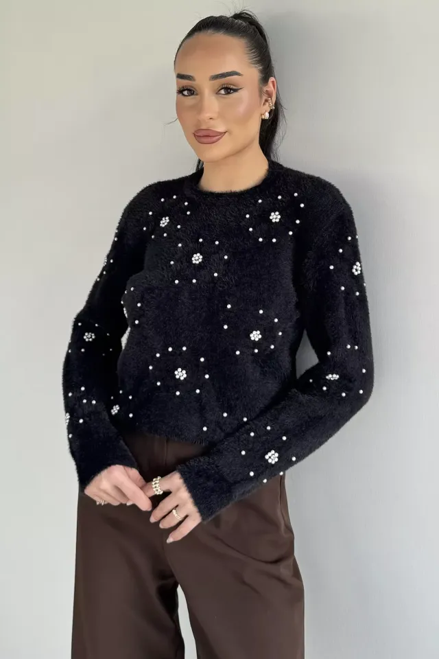 سويتر نسائي محبوك مخطط بأكمام كاب