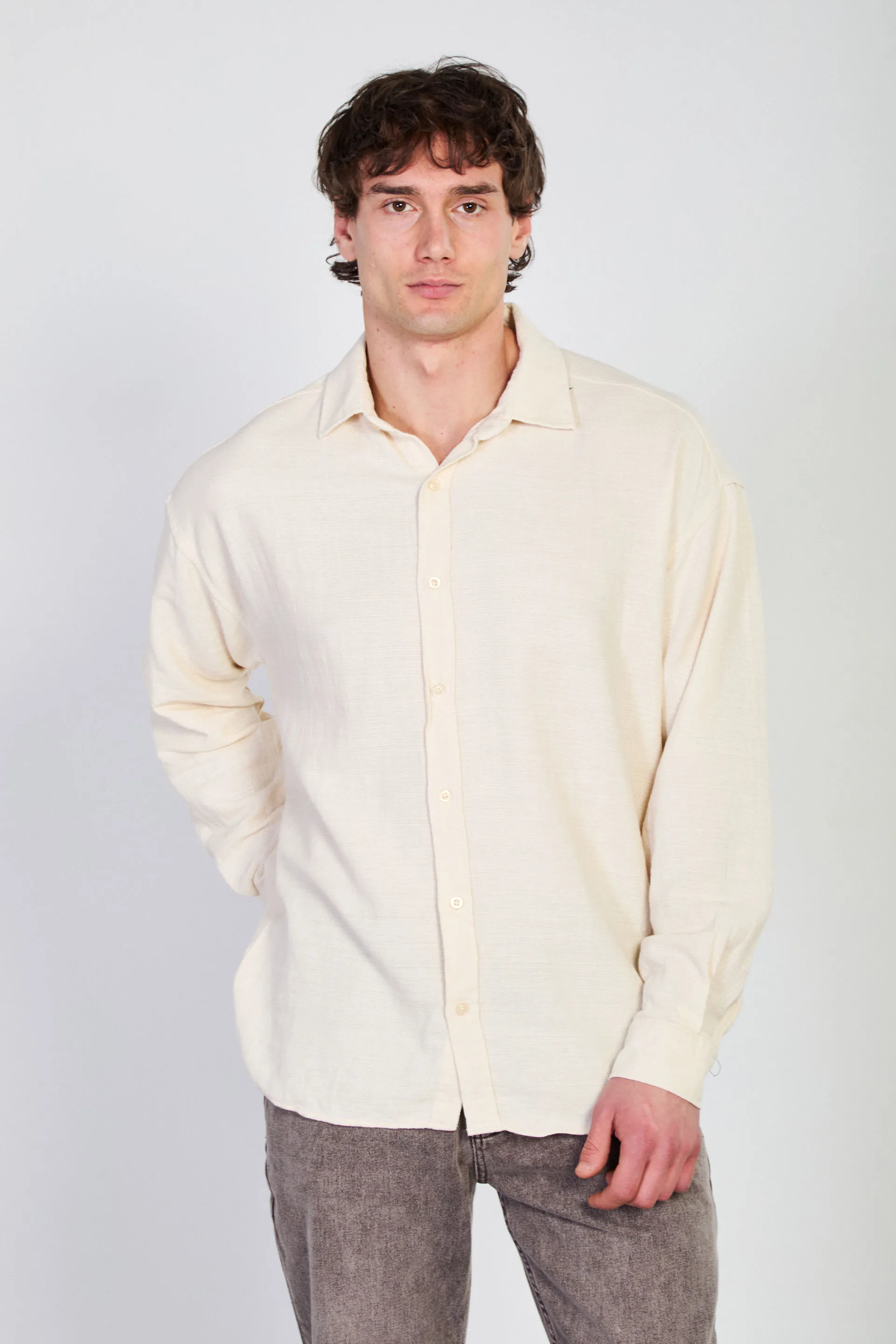 قميص رجالي من القطن بأكمام طويلة بياقة قميص وأزرار - Beyond Store