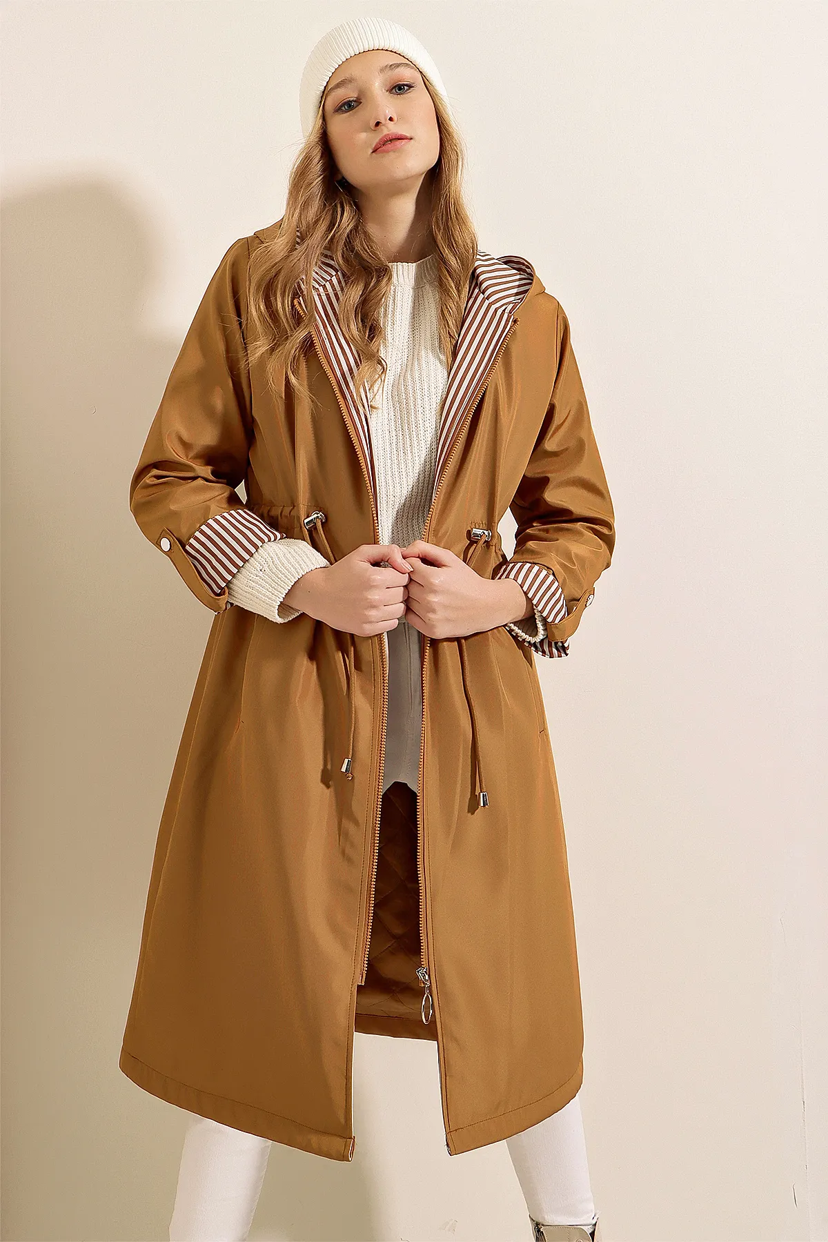 - نوع الأكمام : أكمام واسعة مزمومة من الاسفل