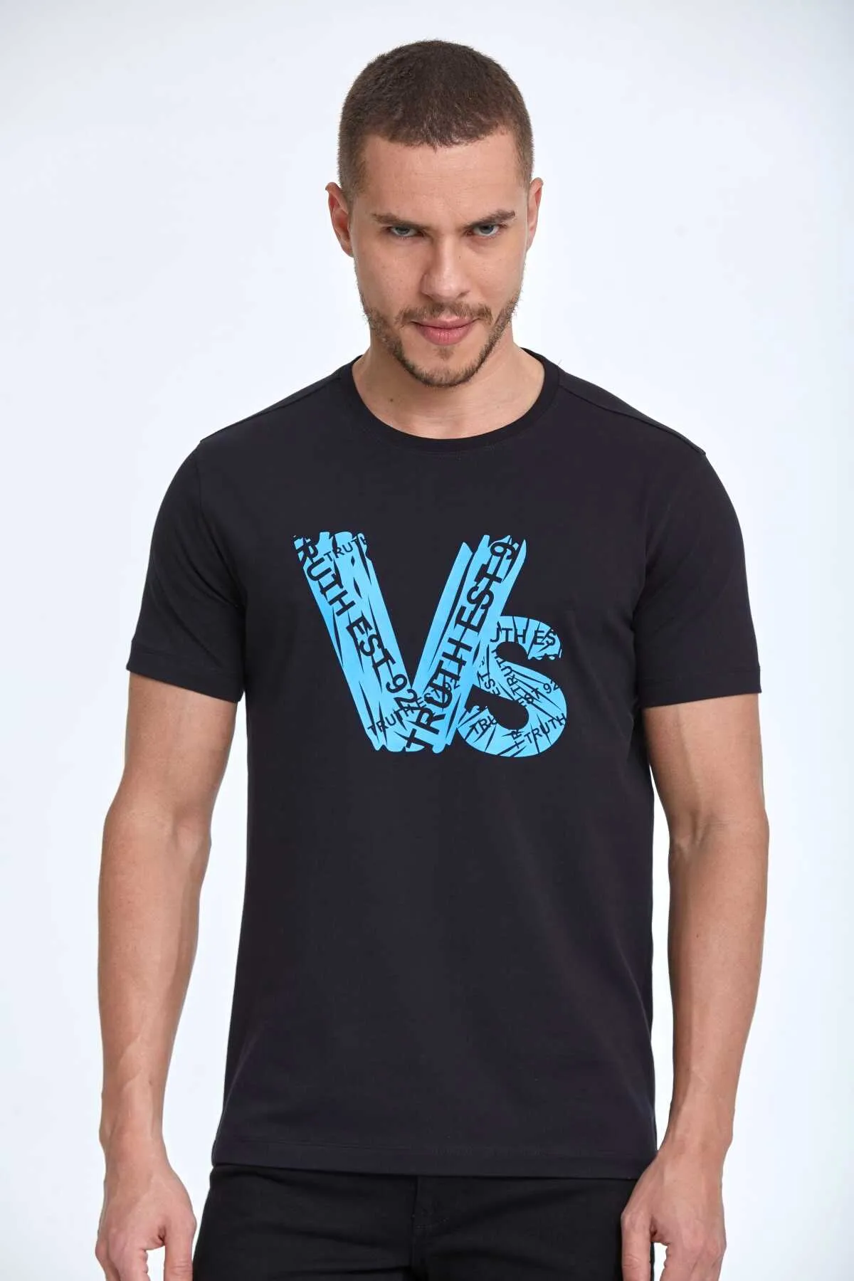 تيشيرت رجالي مطبوع بكتف منسدل وياقة دائرية وقصة مريحة. مصنوع من قطن ١٠٠٪ لنعومة فائقة وتهوية جيدة. يُغسل على درجة حرارة ٣٠ درجة مئوية.
