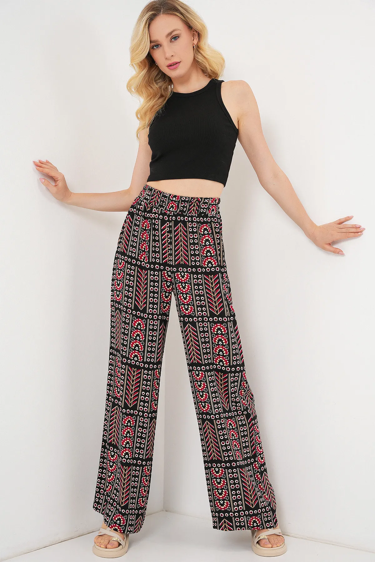 بنطلون واسع عالي الخصر بخصر مرن وقصة مريحة وجيوب مزدوجة خيارك الأساسي للعيد والصيف