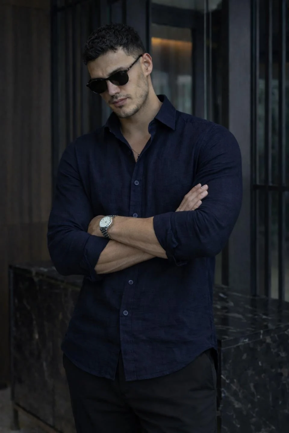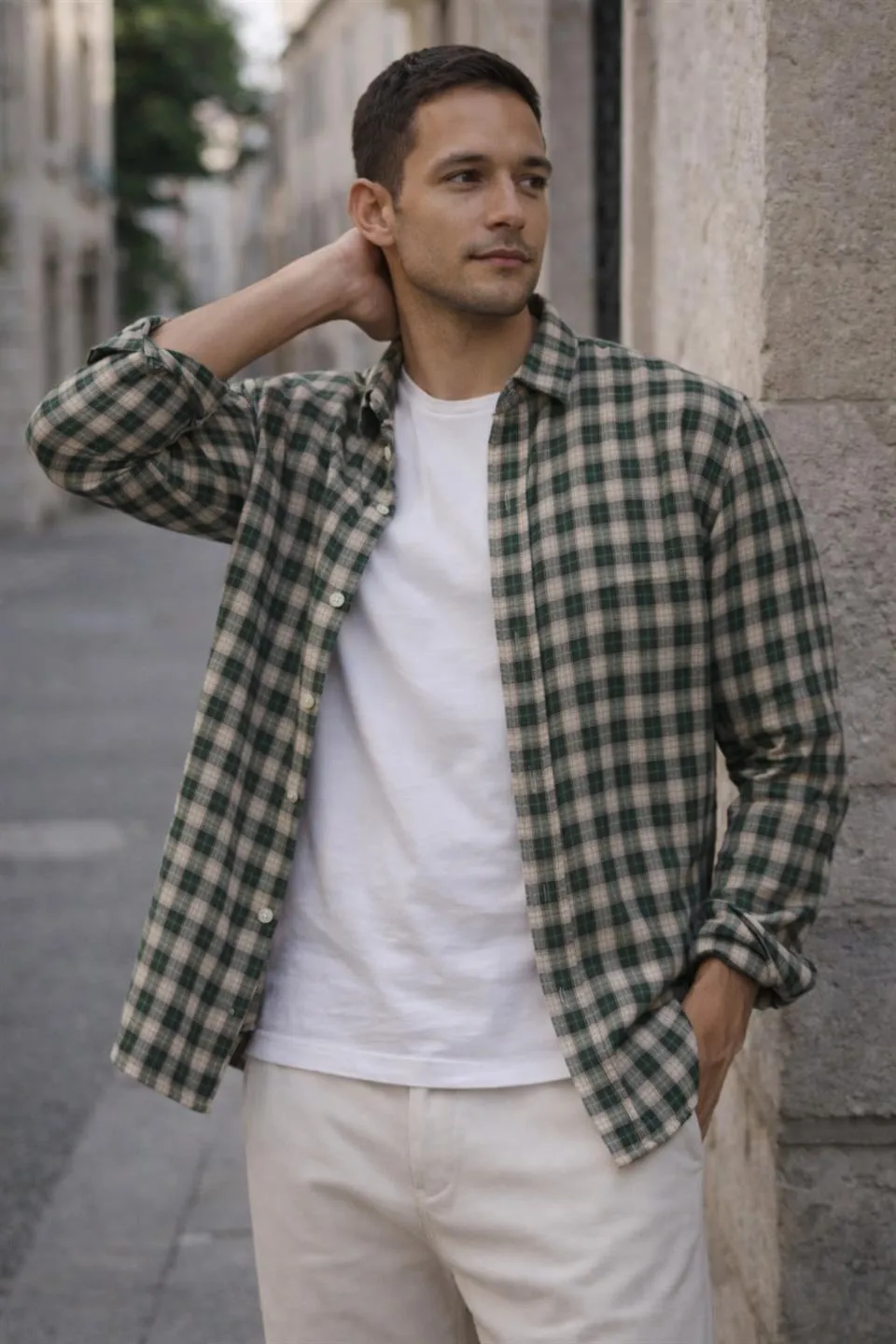 قميص رجالي بأكمام طويلة وياقة دائرية، مصنوع من قطن ناعم 100% لراحة مثالية ومظهر أنيق يناسب جميع المناسبات. مزود بأزرار لسهولة الارتداء. قابل للغسل في الغسالة على درجة حرارة 40 درجة مئوية.