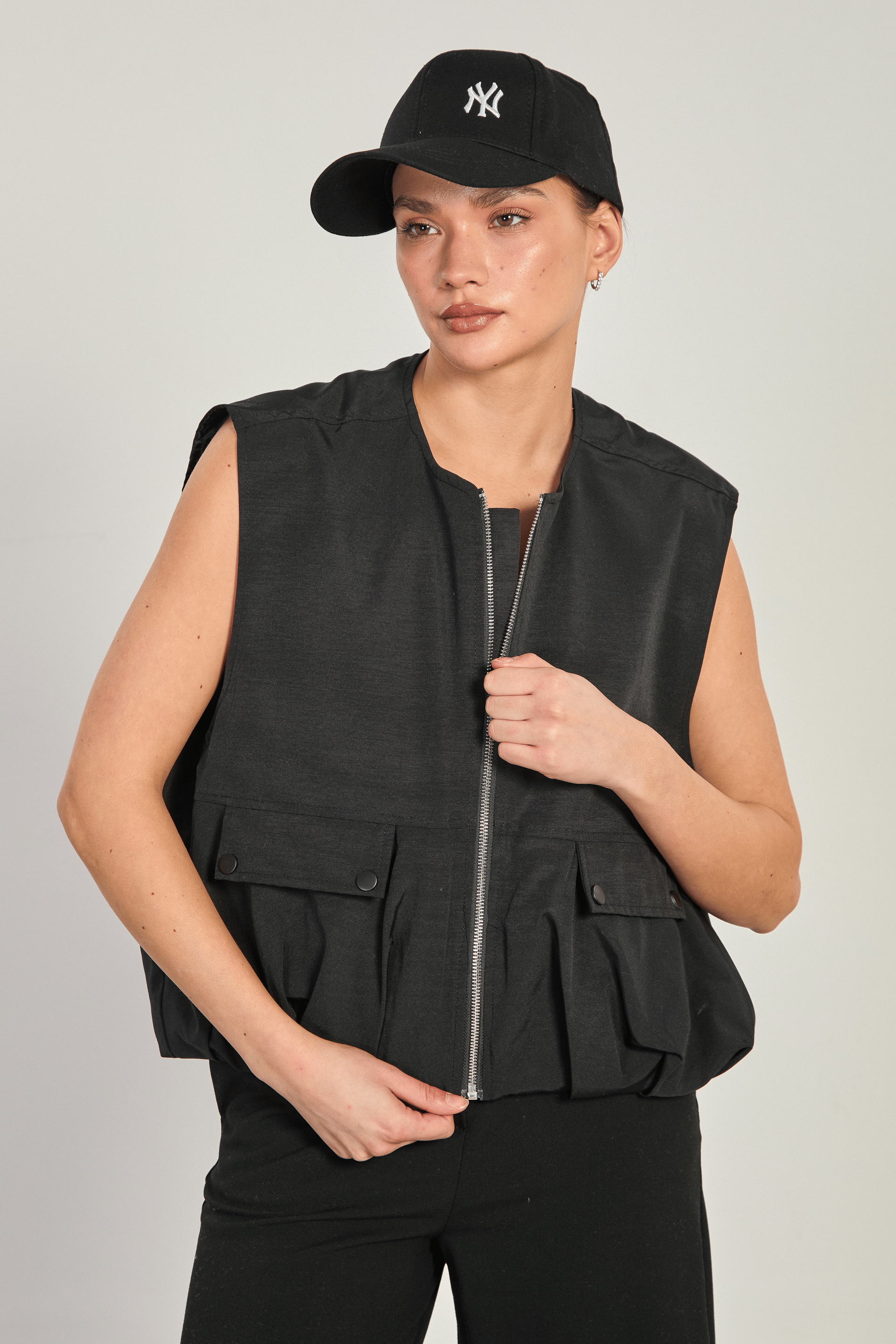 فيست نسائي فيسكوز بياقة V وأزرار أمامية بدون أكمام - Beyond Store