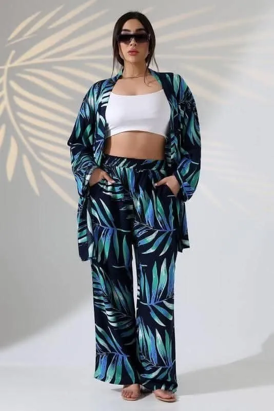 طقم بنطلون كتان أساسي بأكمام طويلة للنساء - Beyond Store