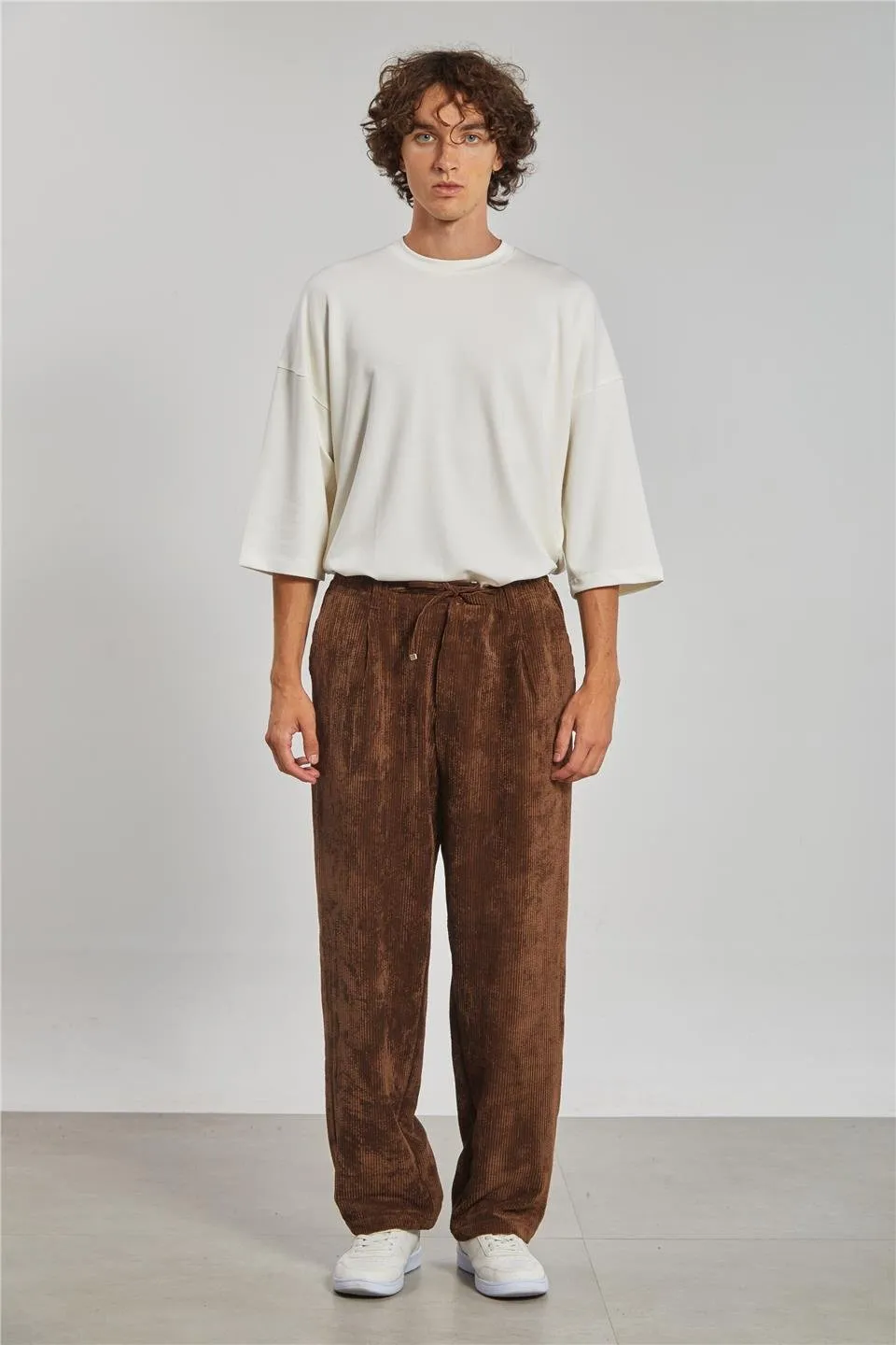 بنطلون رجالي بقصّة مستقيمة مع خصر مرن برباط، مصنوع من قطن ١٠٠٪ لراحة فائقة ونعومة طبيعية. قابل للغسل على درجة حرارة ٤٠ درجة مئوية، مثالي للارتداء اليومي المريح.